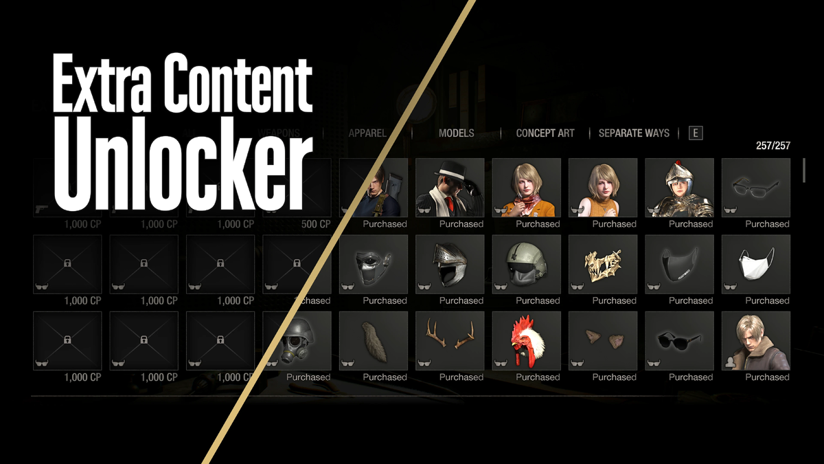 Моддер WuhanBiohazard выпустил новый мод, который позволяет мгновенно разблокировать весь дополнительный контент игры. Это значит, что вам не придётся тратить время на заработок денег, чтобы купить любимый костюм. Для тех, кто не знал, ремейки Resident Evil 2 и 3 получили DLC, позволяющее разблокировать весь дополнительный контент. Это DLC называлось «Разблокировка всех внутриигровых наград». Однако, похоже, Capcom не выпустила аналогичное DLC для Resident Evil 4 Remake. И именно это призван исправить данный мод. Таким образом, используя его, вы получите доступ ко всему оружию, костюмам, аксессуарам, моделям и концепт-артам. Обратите внимание, что это будет постоянное изменение, которое сохранится и после физического удаления мода. Чтобы вернуться к предыдущему состоянию, вам понадобится резервная копия файла data00-1.bin. Она находится рядом с вашими файлами сохранений. Если вы её не сделаете, вы не сможете отменить изменения. Желающие могут скачать мод по ссылке выше.