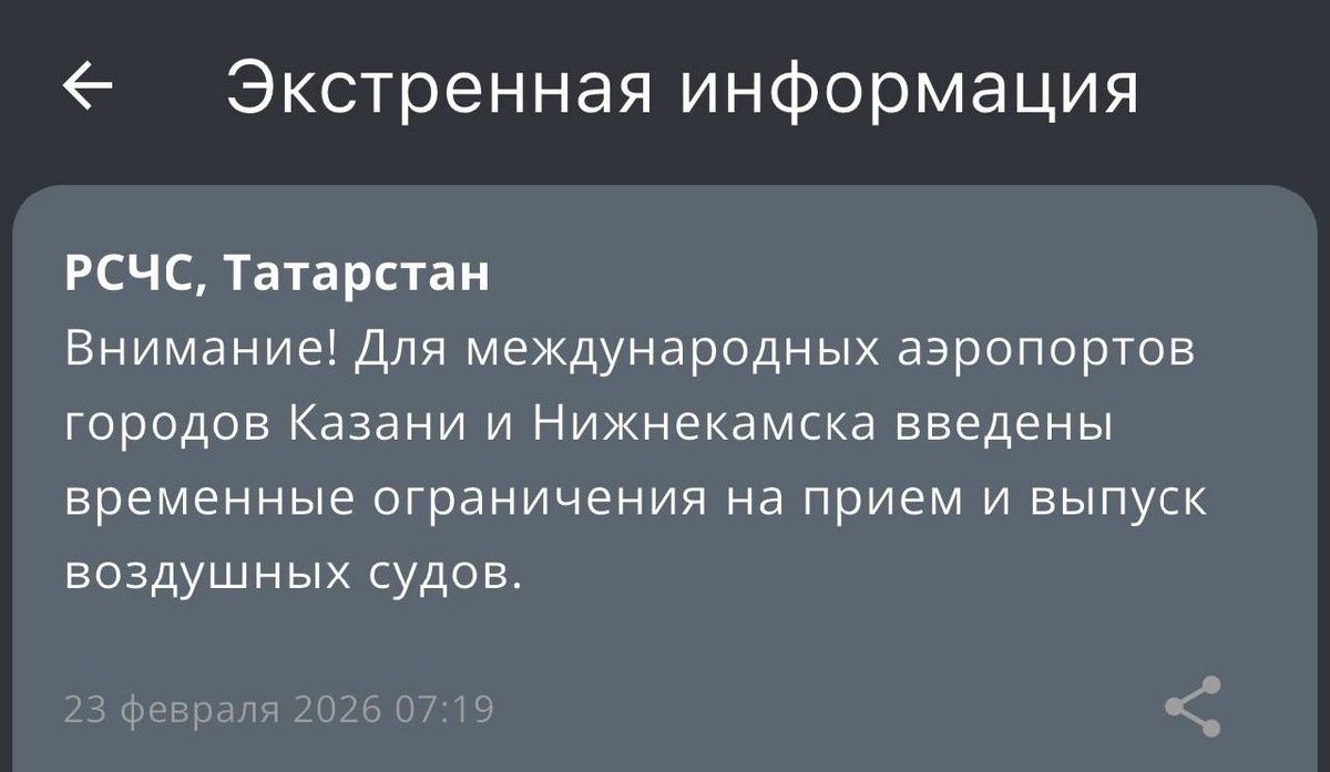 Для аэропортов Казани и Нижнекамска введены временные ограничения на прием и выпуск воздушных судов.