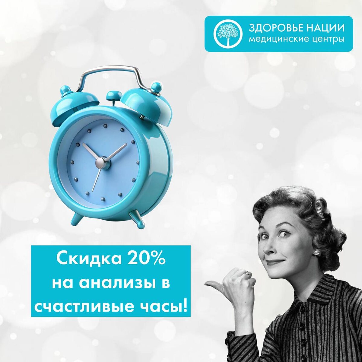 ❓ Прийти в лабораторию «ЛабКвест» после 13:00 и получить скидку 20% на нужные исследования по промокоду «HН20»🔥 Специальное предложение «Счастливые часы» действует ежедневно с 21.05.2024 по 31.12.2026. Не экономьте на здоровье, экономьте на анализах! Обратите внимание👇👇👇 Исключения из акции - непроизводственные услуги, ковид, аллергология, генетические исследования, лекарственный мониторинг, онкогенетика, тесты на родство, подарочные сертификаты, акционные услуги. Специальная цена по акции не суммируется с другими акциями, скидками и скидками по Программе лояльности организатора. Взятие биоматериала оплачивается отдельно. Полный список исключений доступен по ссылке. Для получения скидки скажите об этом администратору.😊 📱Телефоны для справок: +7 (8617) 30-33-72 +7 (8617) 30-33-73 📌Адреса наших клиник: ул. Куникова, 32 ул. Советов, 40 ул. Мурата Ахеджака, 3 Бот для получения уведомлений о Вашей записи на прием: @znpost_bot Запасной канал в МАХ