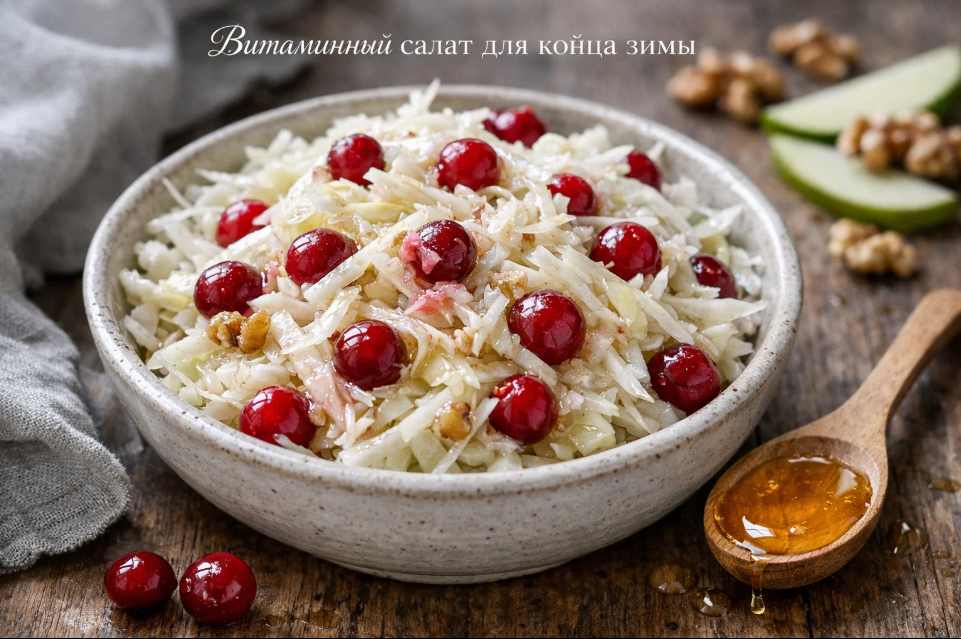Конец зимы — это особенное время, когда организм особенно остро нуждается в поддержке. Длительные месяцы холодов, короткий световой день и недостаток свежих овощей и фруктов делают своё дело. Именно в этот период многие из нас начинают чувствовать усталость, снижение иммунитета и общий упадок сил. Но природа мудра, и даже в конце зимы она предлагает нам продукты, способные восполнить дефицит витаминов и микроэлементов. Одним из таких спасительных блюд является простой, но невероятно полезный салат из свежей капусты с клюквой и мёдом.