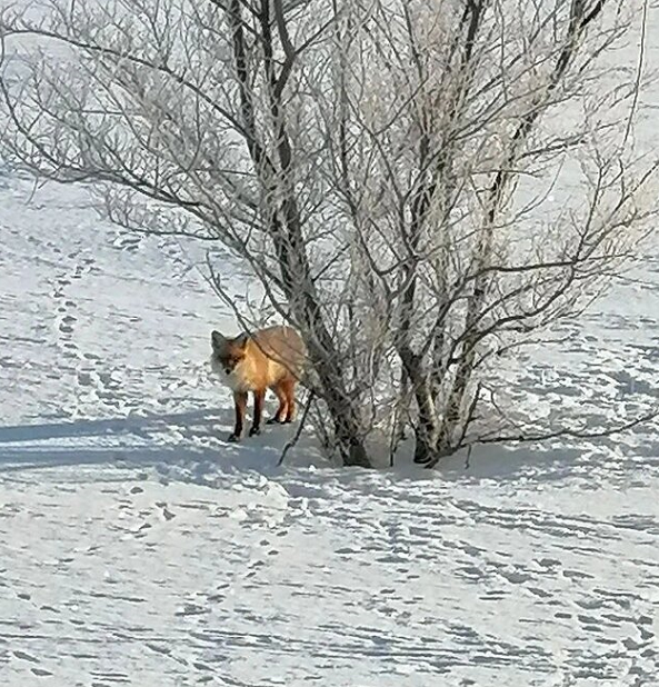 Новое интересное наблюдение сделал уже известный вам (по фотографии пищухи) Анатолий П. Он возвращался с работы домой, в поселок на берегу Урала. У старого зернотока увидел оживление. Пять лис топтались на небольшом пятачке. Они внюхивались в снег. Застывали в позах, обычно предшествующих мышкованию. Гонялись друг за другом, что характерно уже для другого лисьего «ритуала» – весеннего гона. Само место, где собрались лисы, незаурядное. Возле бывшего советского зернотока за годы советской власти немало зерна было порассыпано. Кардинальных изменений в жизнь природы это, конечно, не внесло, но кое-какие акценты сделало. Можно предположить, что мышей здесь чуть больше, чем в других степных местах. Ранневесенняя активность мышей могла привлечь лис. Да и в целом такое мышиное место для лис, что городская площадь с кафе-забегаловками – для человека. Всю лисью пятерку сфотографировать не удалось (были сумерки). А вот на следующий день Анатолию повезло. Он остановил автомашину у тока и смог