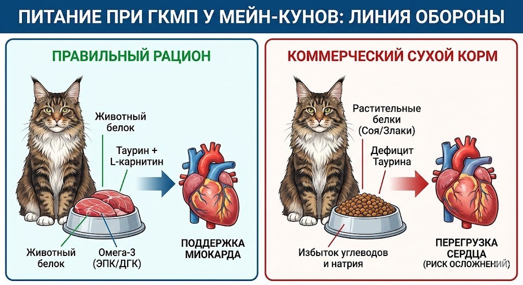 Гипертрофическая кардиомиопатия (ГКМП) у мейн-кунов: Почему диета — это последняя линия обороны сердца