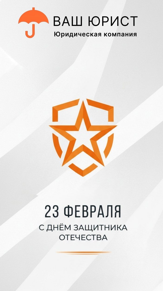 ! ЮК «Ваш юрист» от всей души поздравляет вас с Днем защитника Отечества! ⭐ Быть защитником — значит брать на себя ответственность, оберегать покой своей семьи и уверенно смотреть в будущее. Желаем вам крепкого здоровья, неиссякаемой энергии, стальных нервов и благополучия в семье. Пусть на вашем пути будет как можно меньше непредвиденных преград, а все задуманные планы реализуются на 100%. Помните, что пока вы заботитесь о главном, защиту ваших законных прав мы берем на себя. С праздником! С наилучшими пожеланиями, Команда ЮК «Ваш юрист"