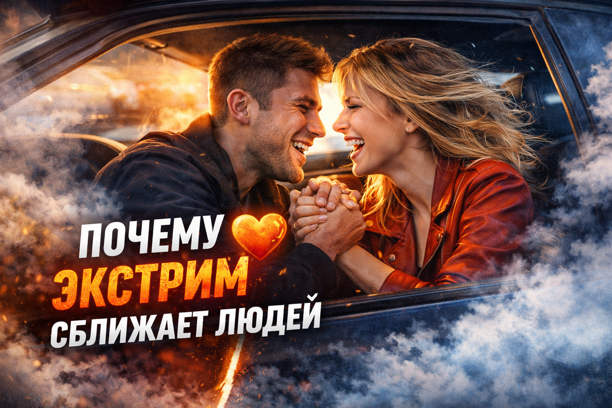 если опасность общая — держимся вместе. Именно поэтому после резкого заноса люди часто инстинктивно смеются одновременно или переглядываются с облегчением. Это микромомент союза. Экстрим — это эмоциональный усилитель. Адреналин делает чувства ярче.