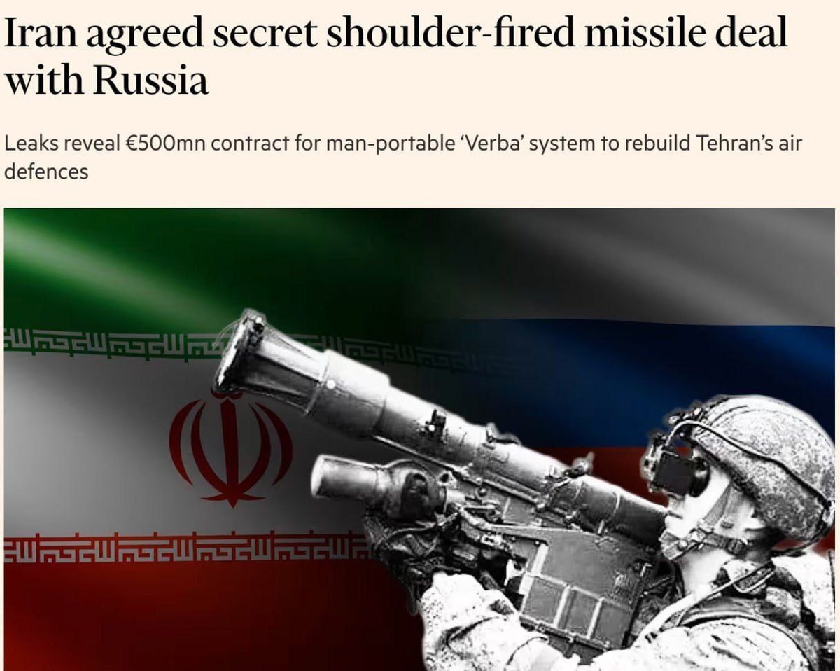 🪂 Состоялась секретная сделка России и Ирана по закупке современных переносных зенитных ракет, об этом сообщила газета Financial Times