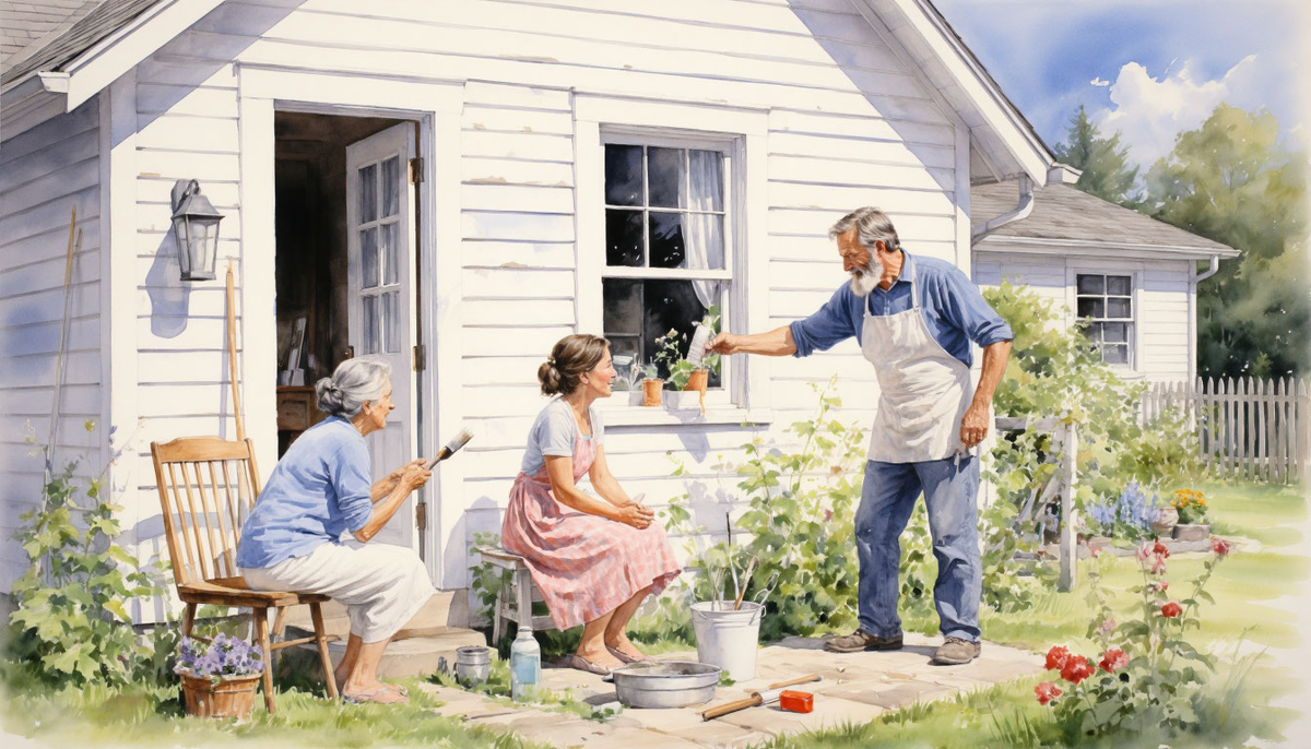 — Мама, так давайте побелим! Краска-то найдётся? — Краска-то есть, — кивнула свекровь, — да вот беда: щётки никакой нет, совсем из головы вылетело её прикупить. Невестка не растерялась. Подумала немного, потом решительно направилась к свекру, который мирно дремал на лавочке у сарая. Тихонько подошла, аккуратно обрезала ему бороду, связала волоски вместе — получилась отличная самодельная кисть. Взяла краску и побелила хату. Стены засияли свежей белизной, дом сразу стал выглядеть наряднее. Свекровь, осмотрев результат, довольно кивнула, но тут же нашла новый повод для заботы: