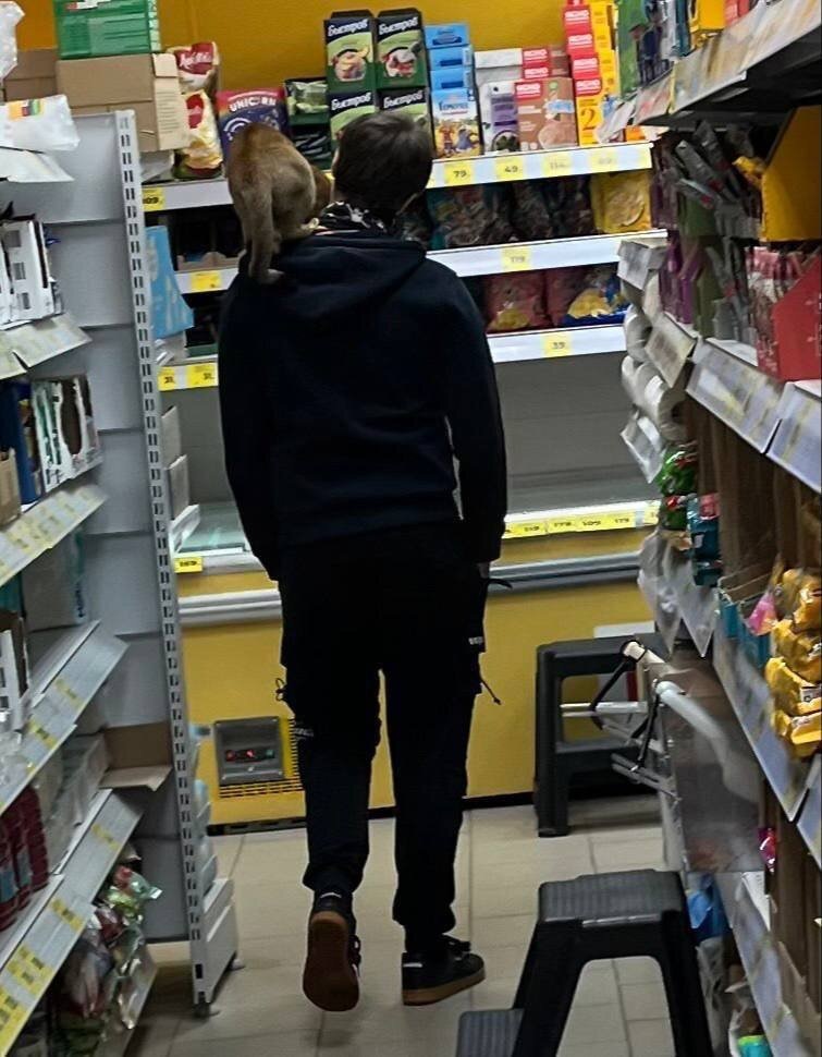 В Краснодаре покупатель пришёл в магазин с котом на плече
