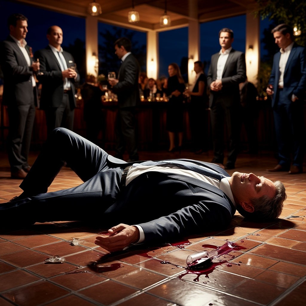 Ещё секунду назад он стоял во главе стола, улыбался, говорил о новых контрактах и расширении. Теперь его лицо стало земляного цвета. Он будто не понимал, где находится и что происходит. Рот приоткрылся, но вдох не получился. Грудь дёрнулась — и замерла.