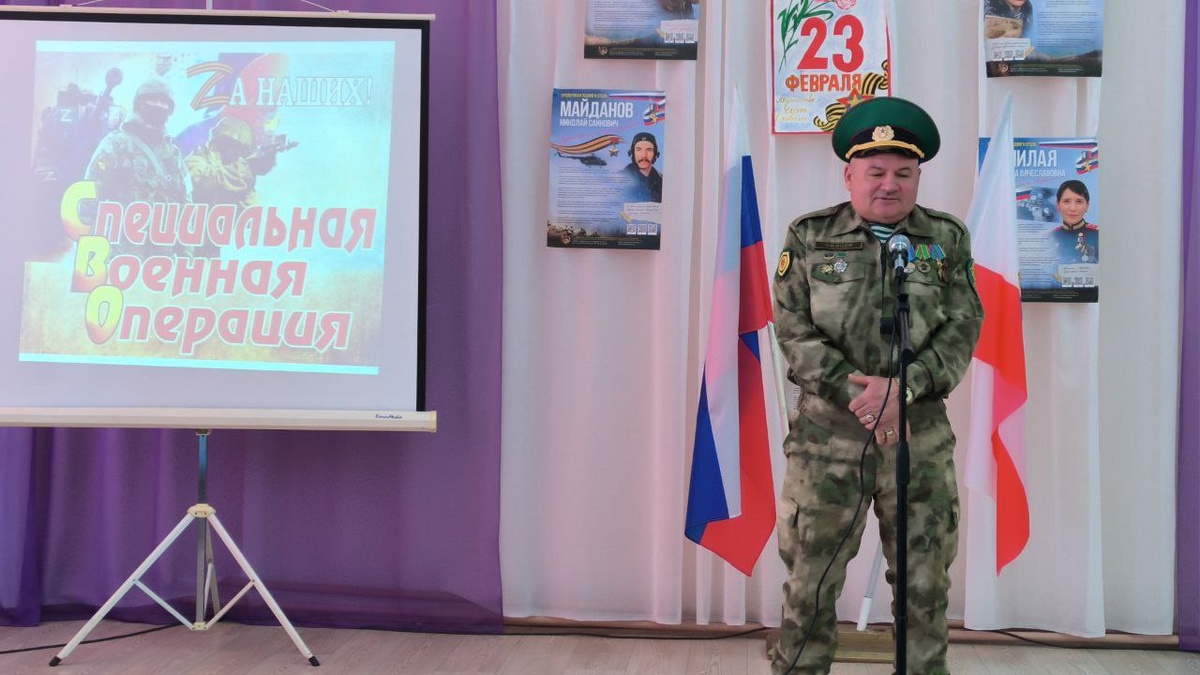 В патриотическом мероприятии приняли участие почетные гости: председатель районной общественной организации "Боевое братство", воин-интернационалист, проходивший службу в составе ограниченного контингента советских войск в республике Афганистан Андрей Анатольевич Матвиенко, представители ВООВ "Пограничное Братство" Насивул Раскалиевич Калмукашев, Михаил Георгиевич Офицеров, мамы участников локальных войн и специальной военной операции. Ведущие рассказали о праздновании Дня защитника Отечества в разные исторические периоды. В ходе презентации электронного альбома об односельчанах, выполнявших воинский долг за пределами Отечества, ребята познакомились с подвигами земляков во имя независимости Родины. На экране сменилось три поколения защитников Отечества. Все лица были знакомы, но героические факты биографии наводили на мысль, что в жизни всегда есть место подвигу. К учащимся обратились почётные гости. Военнослужащие-ветераны пожелали юным патриотам расти достойными гражданами, любящими