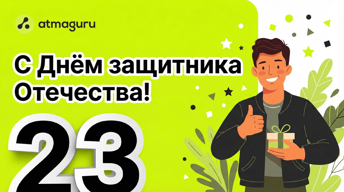! От всей команды Атмагуру поздравляем вас с 23 февраля! Этот день прекрасный повод еще раз сказать вам спасибо за ваше мужество, честь, доблесть и силу. За то, что вы наша опора и защита, за преданность своей семье и Родине. Мы желаем вам мира в душе и гармонии в отношениях с окружающими. Никогда не падайте духом перед трудностями и пусть в ваших сердцах всегда будет место для отваги. Пусть каждый ваш день будет наполнен уверенностью и движением к своим целям по пути развития и процветания. Желаем вам и вашим близким крепкого здоровья, неиссякаемой энергии и множества счастливых моментов! С праздником! Ваша команда Атмагуру