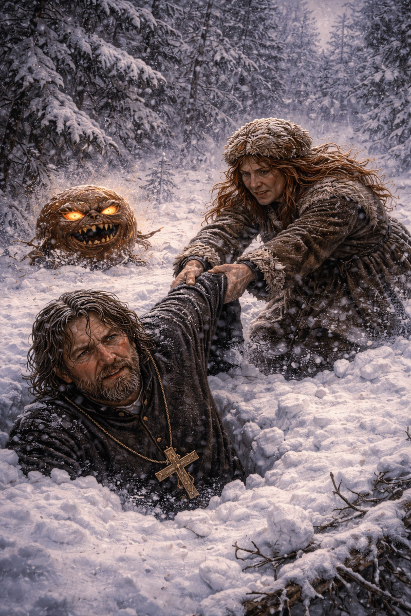 — Опять святоша застрял, — ехидно протянул колобок, когда Иоанн в очередной раз провалился по пояс. — Если он так будет зарываться в сугробы, весна наступит раньше, чем мы дойдем.
