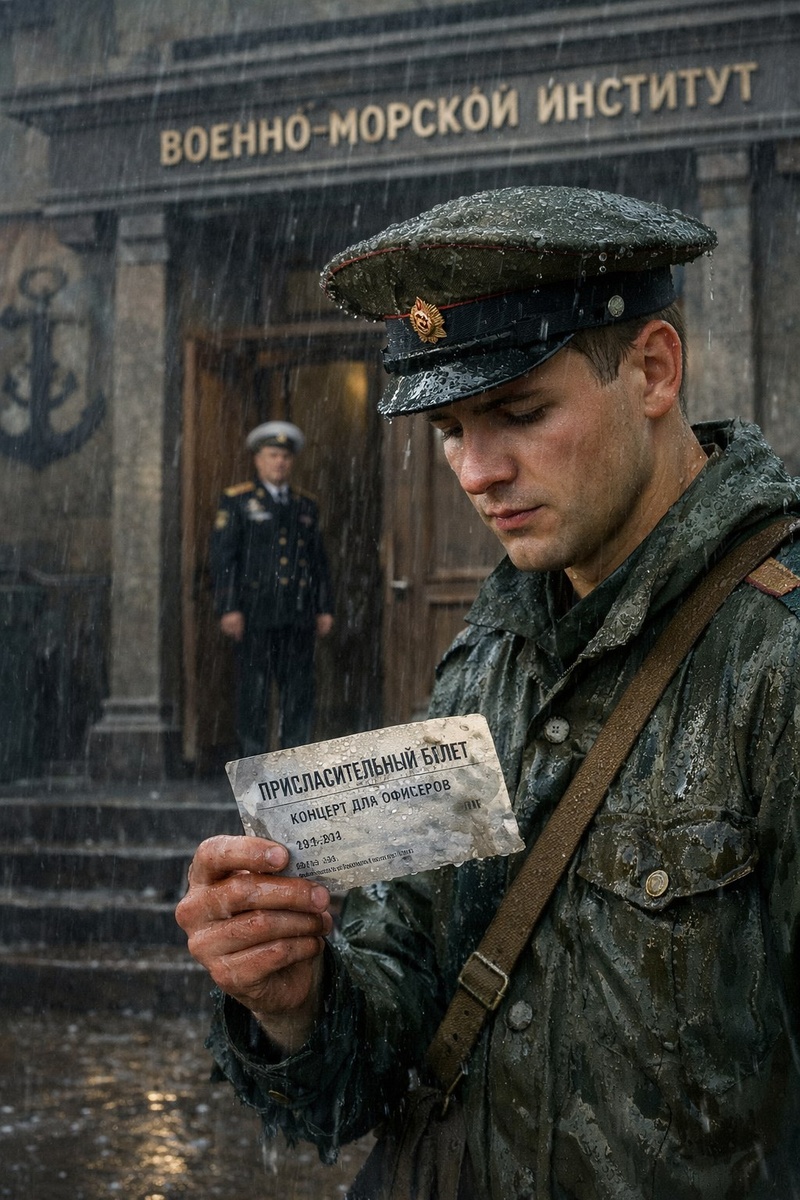 В День защитника Отечества логично, что вспоминаются армейские годы. За те полтора года, что я провёл в армии, было множество разных историй, которыми я могу поделиться. Вот одна из них. В апреле командир нашего подразделения отправил меня в Военно-морской институт отнести пригласительный билет на концерт для офицеров. Мне обозначили, кому я должен был передать билет. На улице начинался мелкий дождь, и я попросил переждать его. Однако командир приказал идти сразу. И буквально через минут десять после выхода из части начался проливной дождь. Несмотря на то что билет был убран под одежду, он всё же промок. Когда я пришёл в институт и достал пригласительный, мне хотелось провалиться сквозь землю за то, что принёс его в таком виде. Там даже время размыло от воды. Я всё же нашёл адресата и, извиняясь за состояние билета, передал ему его. Вопреки негативным ожиданиям офицер совершенно спокойно отнёсся к пригласительному и предложил чай, чтобы согреться и переждать непогоду. Я отказался и