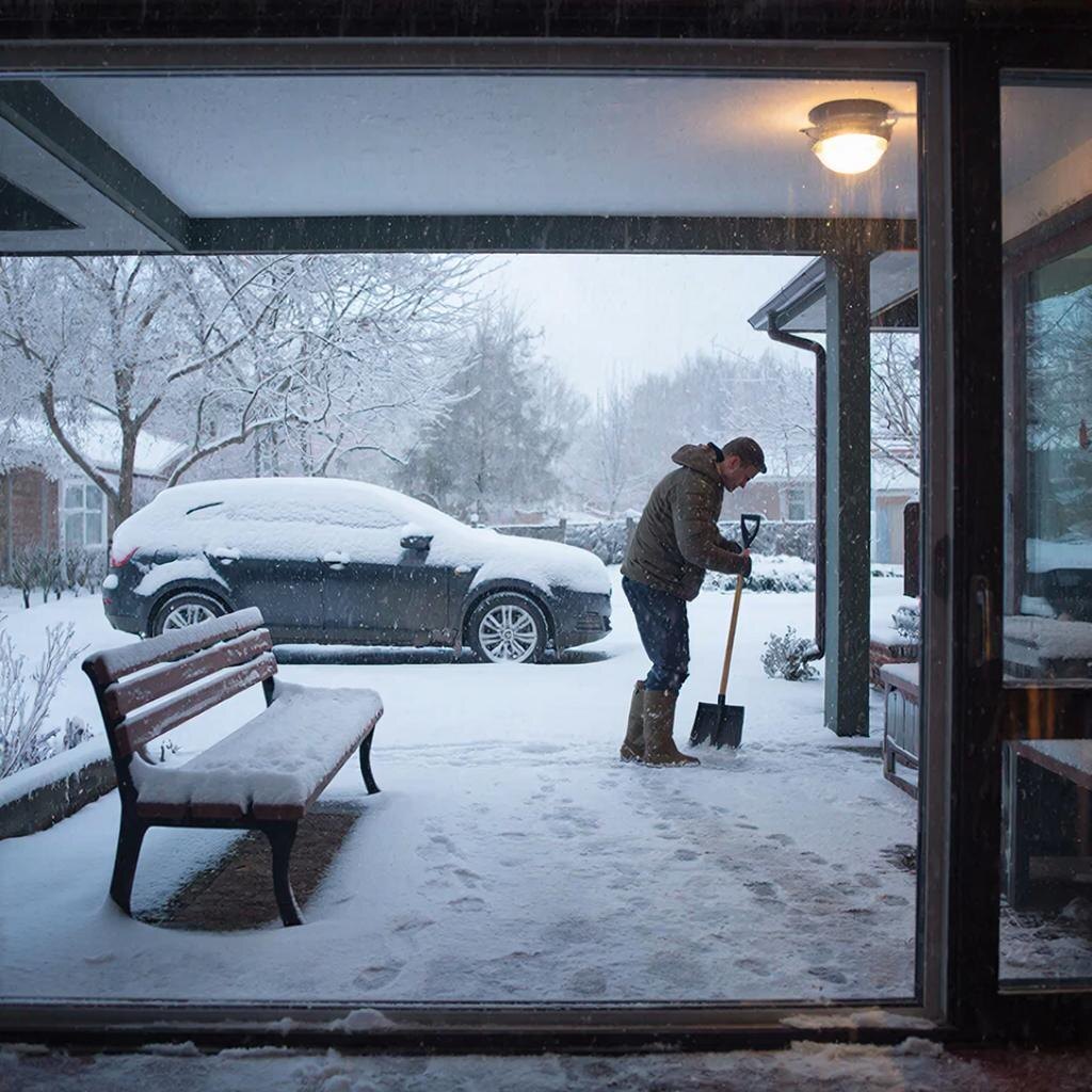 Все выходные шел снег, нападало очень много, и в праздничный день нужно идти и работать.