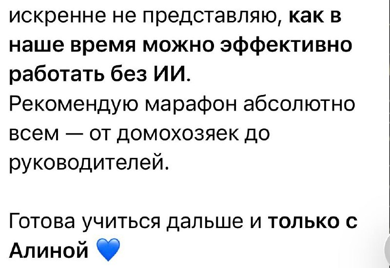 ? Знаю: • что вы до сих пор тратите часы на то, что может сделать ИИ • что вас подбешивают те, у кого ИИ делает то, что у вас не получается • что знаете, что с ИИ можно делать много, но у вас результат не тот и ИИ вас не понимает(( 15 марта стартует марафон, где вы создадите себе готовых ИИ-помощников (custom gpts), которые облегчат вам жизнь, снимут рутину и принесут денег. Да, да. И такое тоже можно - зависит только от вас и ваших задач. А они отлично выполнят поставленную им конкретную задачу. Что еще входит в марафон: 🍭 3 живых зума — разбираем ваши реальные вопросы, думаем как внедрить ИИ 🍓 Ежедневный челлендж — мини-задания на 5-10 минут, чтобы практиковаться 🦄 База знаний — проверенные шаблоны, промпты, инструкции и инструменты, которые сразу внедряете в работу 🫶 ChatGPT/ Claude/ Perplexity и все их фишечки.. П.С. Уже бы пора освоить качественное взаимодействие с нейронкой и промптами. Тк наступает следующий этап — эра ИИ-агентов с полной автоматизацией (по моей системе