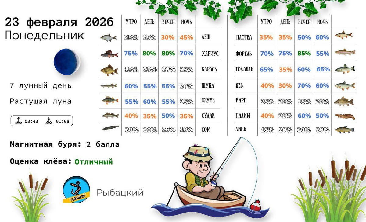 Прогноз клёва рыбы на 23 февраля по фазе и состоянию луны ✅