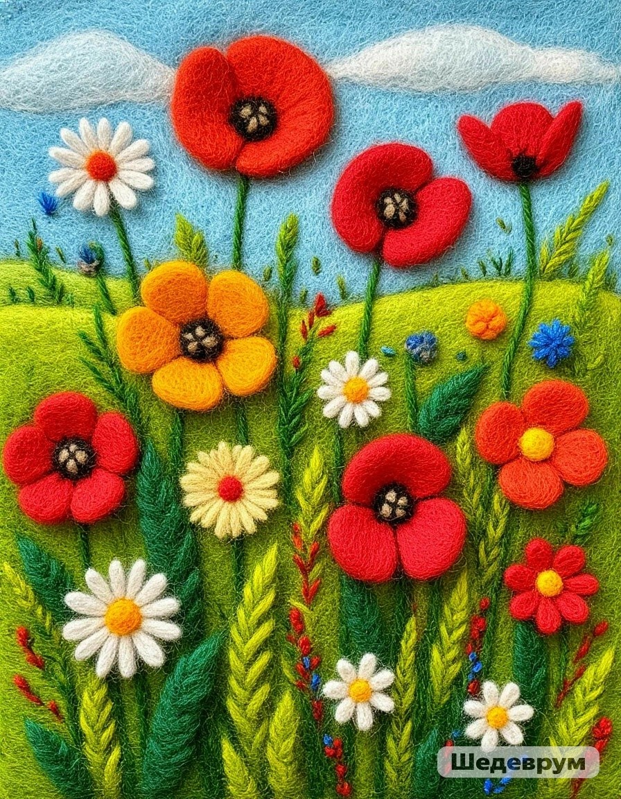 Шерсть как материал идеально подходит для изображения цветов — она позволяет передать их мягкость, пушистость и нежность.