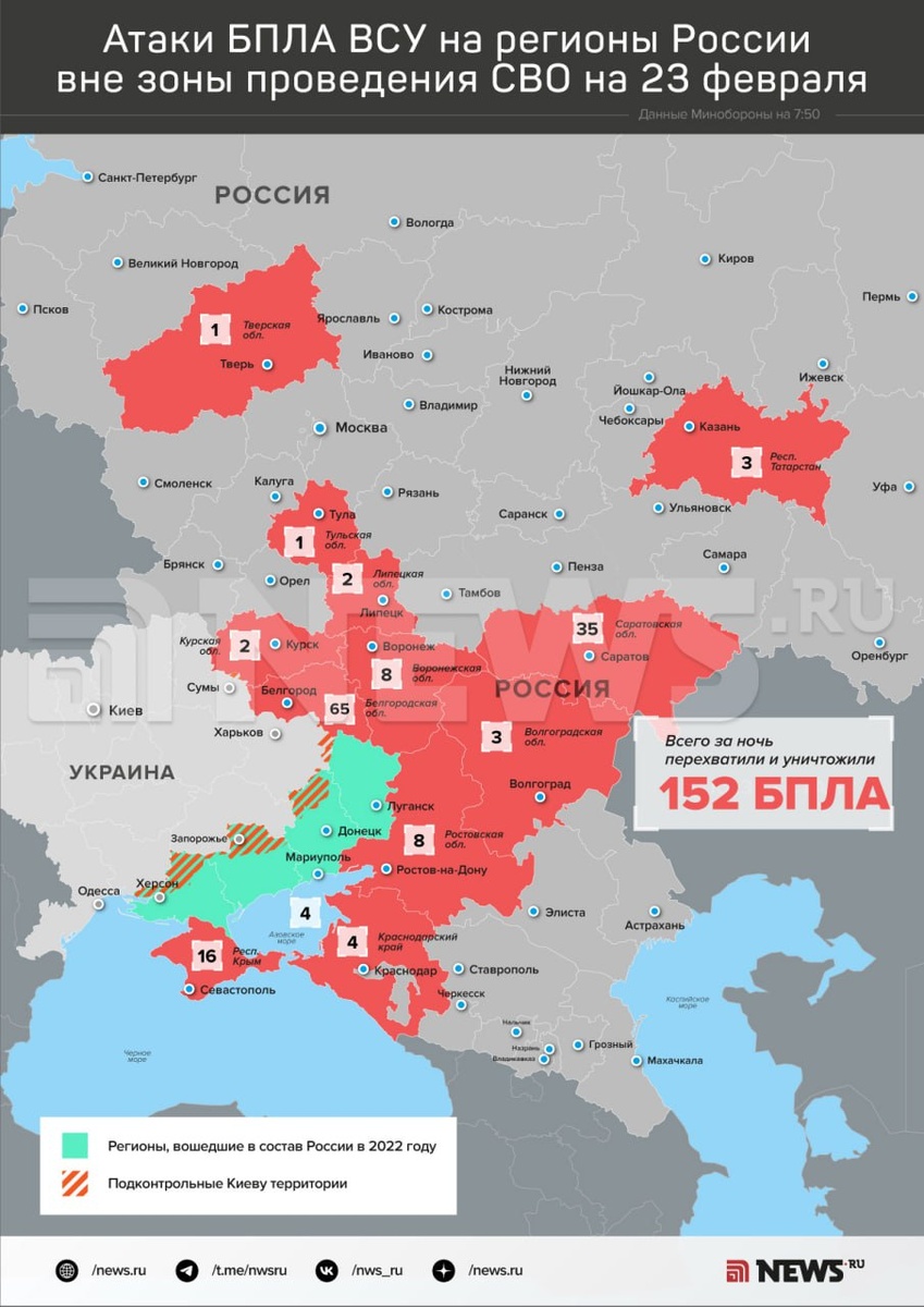 Из них 65 — над Белгородской областью, 35 — над Саратовской областью и 16 — над Крымом. Подробнее — в нашей инфографике. ⭕️ Подписаться | Мы в MAX | Буст