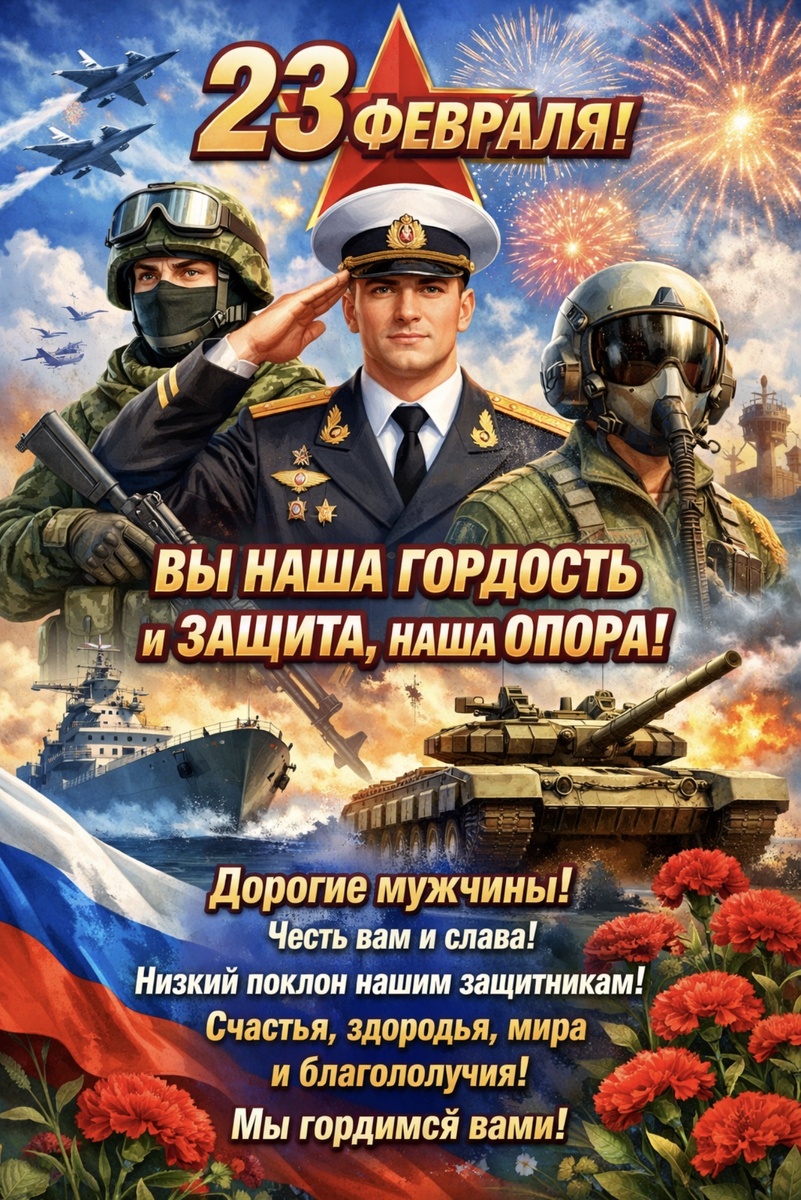 Пусть в ваших семьях всегда будет счастье, тепло и любовь, пусть вас ждут дома с улыбкой и гордостью, а в жизни будет как можно больше радостных моментов, побед и достижений.
