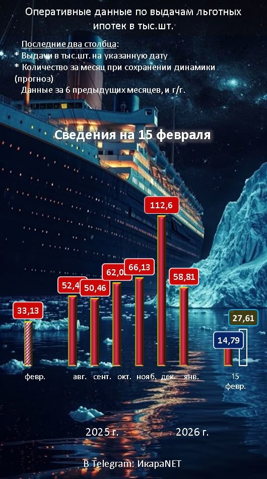 Начинаем остывать. Идем темпами хуже прошлогодних. Тогда в феврале было выдано 33 тыс. льготных ипотек, сейчас будет в лучшем случае 27 тыс. Мнфину можно выдохнуть, застройщикам больше не дышать. Им этот пережиток прошлого теперь без надобности. 🛸 Неустойка & компенсация: да/нет 🏜 Форум ИкараNET