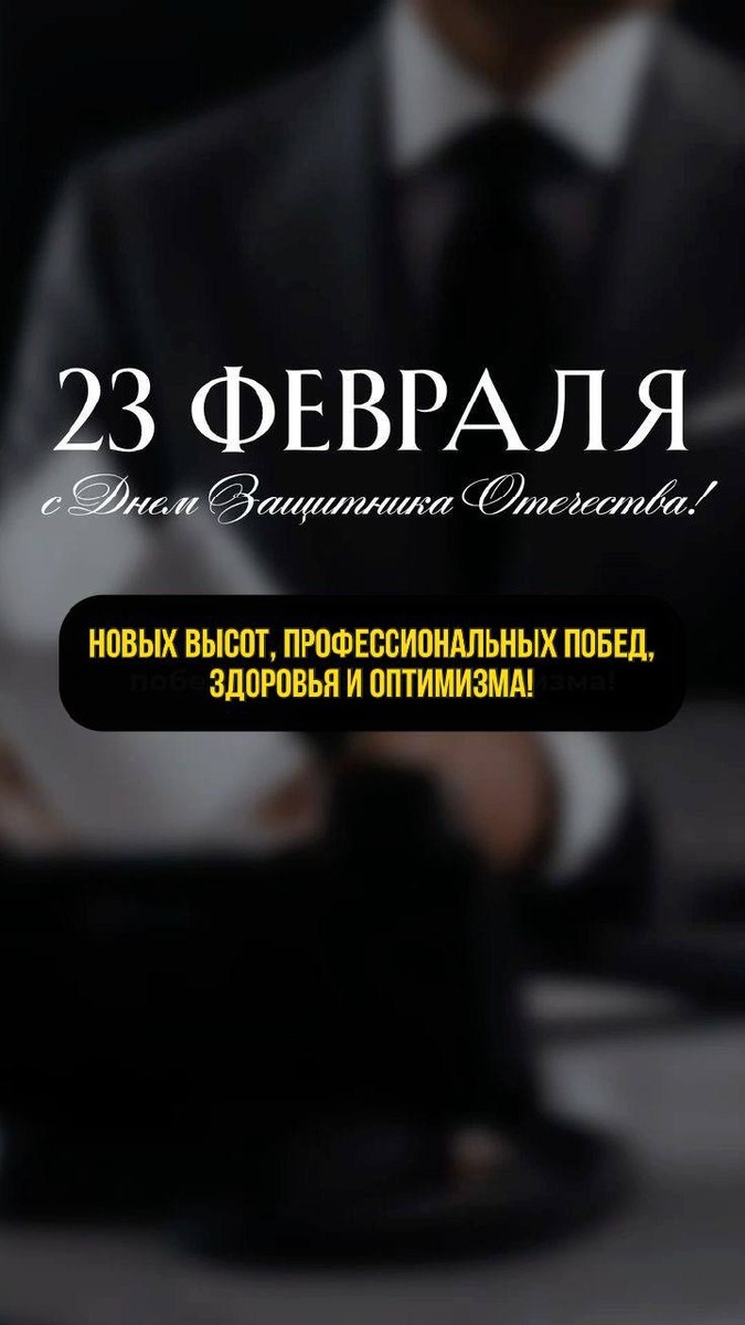 ! Поздравляю всех защитников отечества с 23 февраля! Крепкого здоровья, силы духа, уверенности в завтрашнем дне и надёжного тыла. Пусть всё задуманное получается, а рядом всегда будут любимые люди. С праздником!