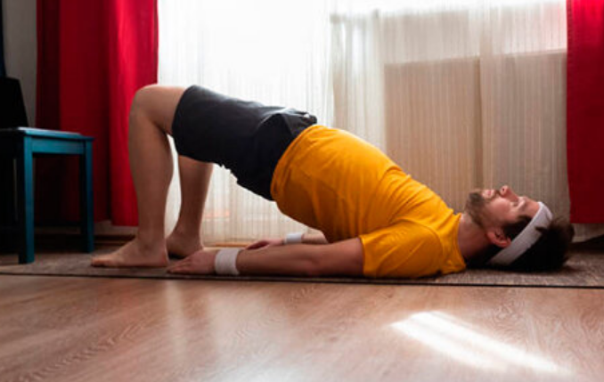 - Подъем тазовой части (полумостик) от пола на вдохе и возврат в исходное положение на выдохе.