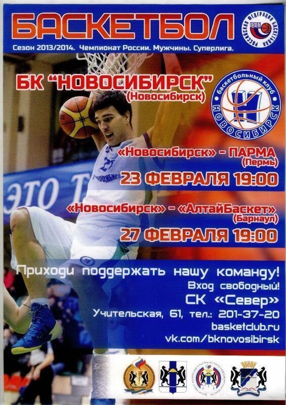 Сезон 2013/2014. Чемпионат России Мужчины. Суперлига". БК "Новосибирск" . 23, 27 февраля. "Новосибирск - "Парма" (Пермь), "Новосибирск - "АлтайБаскет". Российская федерация баскетбола. Администрация Новосибирской области, Департамент физической культуры и спорта Новосибирской области, МЭРИЯ города Новосибирска, Управление физической культуры и спорта МЭРИИ Новосибирска. #ретроспективы_пермского_спорта@oldperm #Пермь #ИсторияПерми #ПрошлоеПерми #СтараяПермь https://vk.com/oldperm