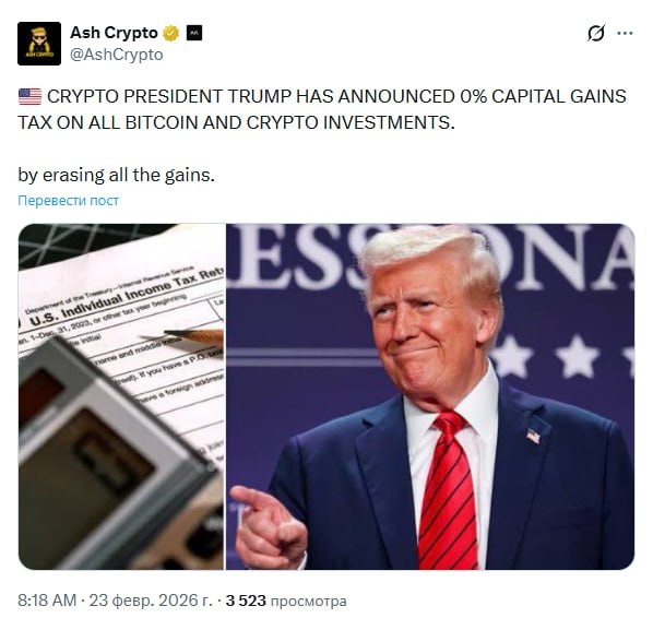 КРИПТО-ПРЕЗИДЕНТ ТРАМП ОБЪЯВИЛ 0% НАЛОГА НА ПРИБЫЛЬ С КАПИТАЛА ДЛЯ ВСЕХ ИНВЕСТИЦИЙ В БИТКОИН И КРИПТОВАЛЮТЫ.