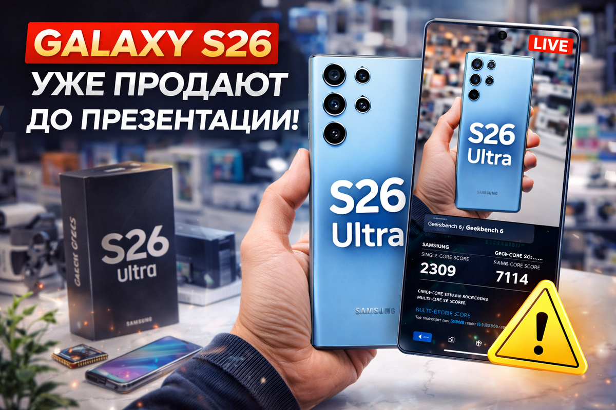 Несколько дней до анонса флагманского Samsung Galaxy S26 Ultra, который должен быть представлен на Galaxy Unpacked 25 февраля 2026 года, смартфон уже оказался в продаже в одном из магазинов в Дубае — его купил блогер и поделился фото/видео новой модели. 📸 Сегодня в сети публикуют снимки устройства с включённым экраном и бенчмарк-результатами, которые сравнимы с топовыми смартфонами на Snapdragon 8 Elite Gen 5. ⚠️ Эксперты предупреждают: такие ранние продажи происходят из-за нарушений эмбарго и не связаны с официальным стартом продаж Samsung — гарантий и подтверждения качества у таких аппаратов нет. Официальная презентация и старт предзаказов всё ещё запланированы Samsung на 25 февраля, а массовые продажи могут начаться позже.