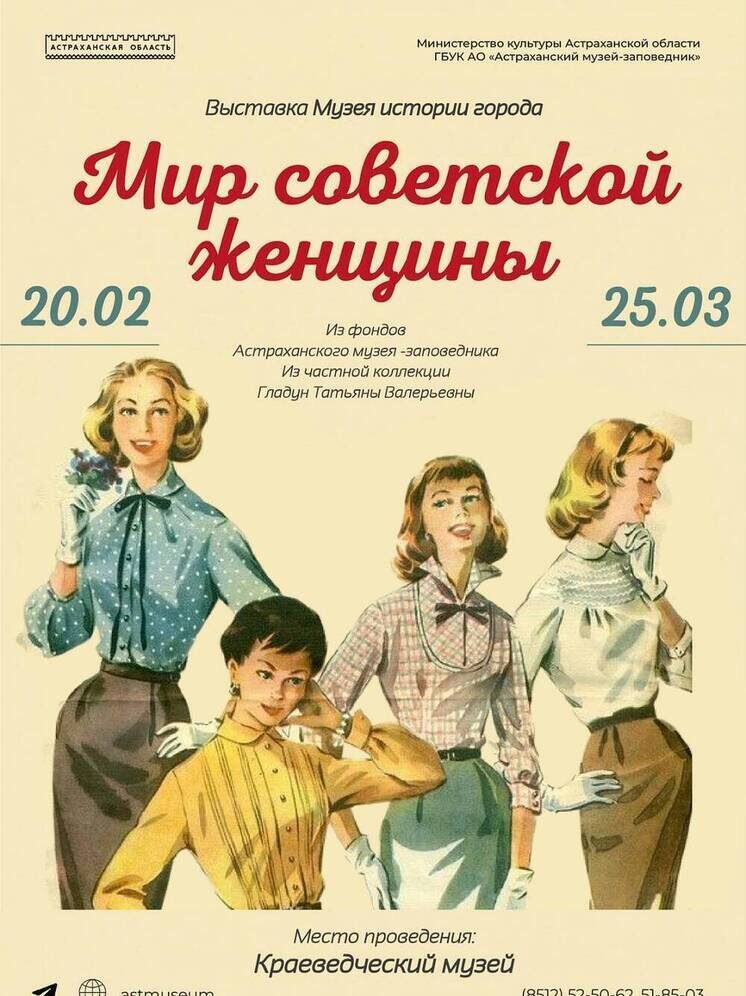 В Краеведческом музее Астрахани начала работу выставка «Мир советской женщины». Экспозиция переносит посетителей в атмосферу 1940–1980-х годов и показывает, из каких мелочей складывался повседневный быт женщин в СССР. В витринах — шкатулки, флаконы духов, косметика, украшения, сумочки, кошельки и изящные статуэтки. Эти вещи когда-то стояли на трюмо, хранились в шкафах и сопровождали своих хозяек в повседневной жизни. Через предметы быта можно увидеть, как менялись вкусы, мода и представления о красоте в разные десятилетия советской эпохи. Выставка объединила экспонаты из частной коллекции Татьяны Гладун и фондов Астраханского государственного объединённого историко-архитектурного музея-заповедника. Посетить экспозицию можно по адресу: улица Коммунистическая, 5/15. Вход свободный. Музей открыт со вторника по четверг с 10:00 до 17:00, в пятницу и субботу — до 19:00, в воскресенье — до 17:00. Понедельник — выходной. Автор: Редакция «МК в Астрахани»