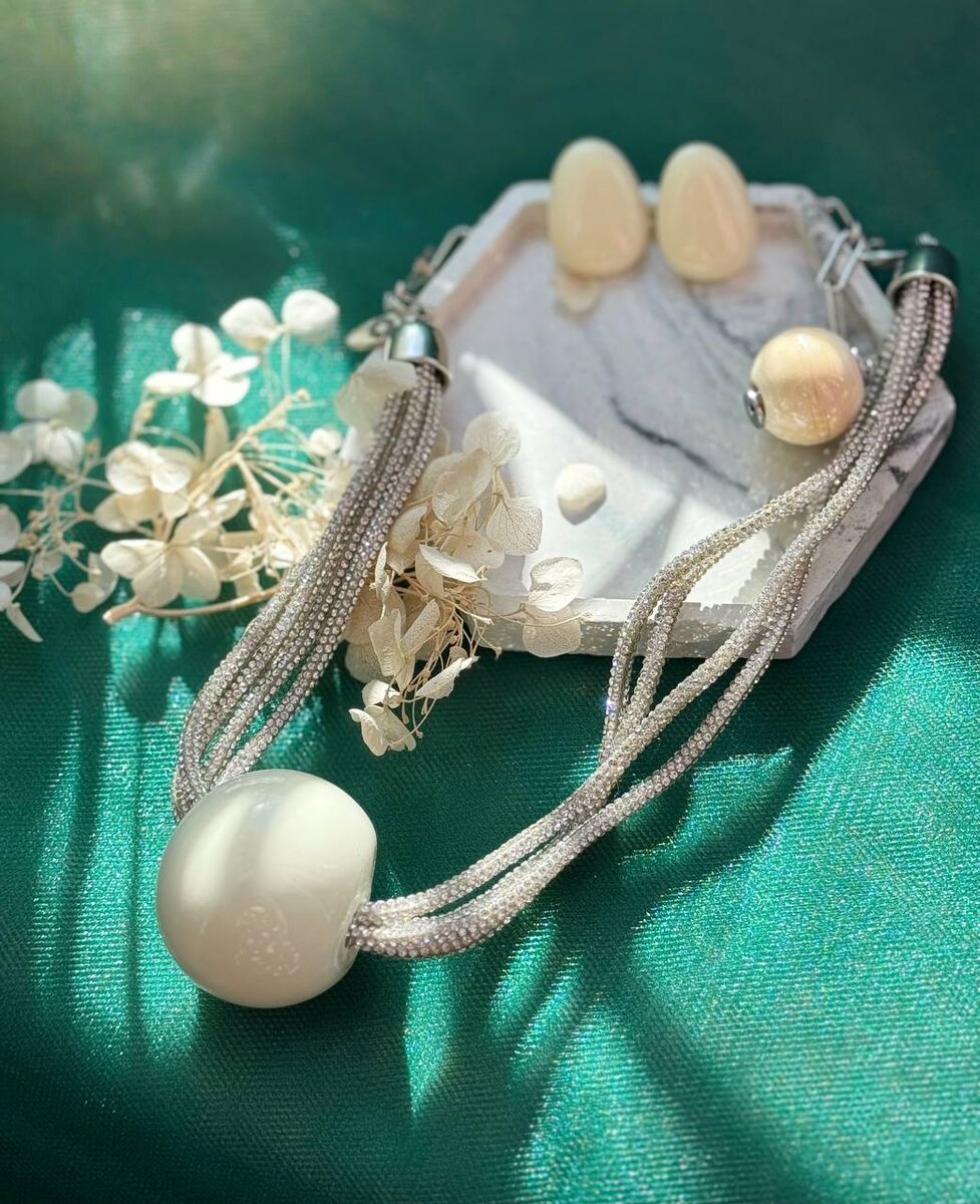 👑 Этот сет создан для тех, кто не боится быть в центре внимания и любит магию мерцания. Многослойное колье из тонких нитей в сочетании с лаконичными молочными вставками создает эффектный объем и притягивает свет при каждом движении. Однотонные серьги и кольцо идеальной сферической формы дополняют ансамбль, делая его элегантным и статусным. Такие аксессуары станут вашим секретным оружием как для особых случаев, так и для образов в casual.✨ Колье 7200 Серьги 1650 ✨Нажмите для заказа ✉️ Нажмите чтобы задать вопрос