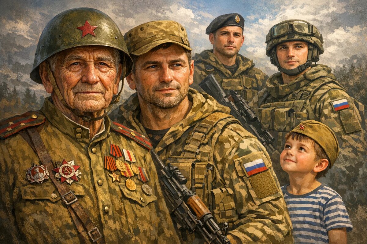 Дорогие мужчины, поздравляю вас с Днём защитника Отечества! В этот особенный день хочу выразить вам свою глубокую признательность и уважение. Наши деды, сражавшиеся за Родину, оставили нам пример мужества и стойкости. Многие из них не вернулись, но их подвиг навсегда останется в наших сердцах. В нашей семье служба в армии — это не просто долг, это честь, которую с гордостью несут все мужчины. Мой брат, видевший ужасы войны, и мой сын, "воин света", — вы оба являетесь примером для всех нас. Желаю вам крепкого здоровья, мирного неба над головой и семейного счастья. Пусть каждый день будет наполнен радостью и спокойствием. Ваше благополучие — это наше общее счастье. С праздником!