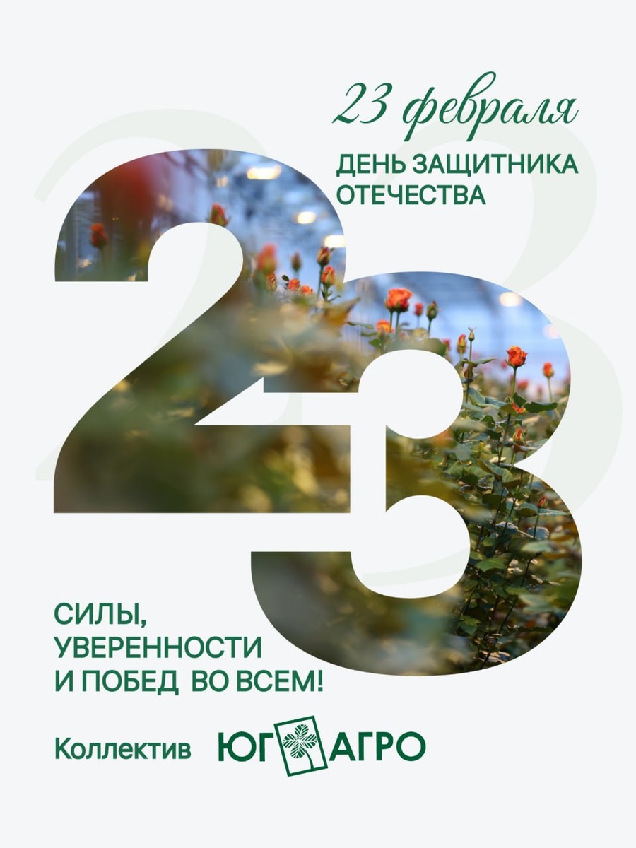 ЮГ🍀АГРО поздравляет мужчин с Днём Защитника Отечества! 🌟Дорогие коллеги! Благодарим вас за профессионализм, вовлеченность и вклад в развитие компании. Желаем силы, уверенности и побед во всём!🎈 🌟Уважаемые клиенты и партнёры, спасибо за доверие и сотрудничество. Желаем вам успешных проектов и новых возможностей для роста! 🔥 Ценим наше взаимодействие и рады идти вперёд вместе. С Праздником! ✨