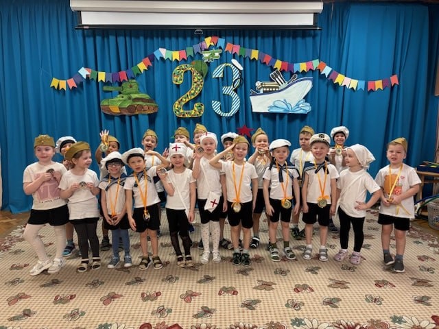 Рассказывает воспитатель Надежда Юрьевна ПОЛОЖЕНЦЕВА. В преддверии праздника 23 февраля в нашем учебном корпусе 567 состоялись спортивно-музыкальные мероприятия, посвящённые Дню защитника Отечества, в которых принимали участие ребята старшей и подготовительной группы. На празднике воспитанники читали стихи о защитниках России, играли в подвижные музыкальные игры, отгадывали загадки о военных профессиях, танцевали «Яблочко». На этот праздник дети пригласили своих пап и дедушек, которые вместе с детьми продемонстрировали всю свою силу, ловкость и смекалку в весёлых конкурсах и эстафетах. Это праздник настоящих мужчин — смелых и отважных, ловких и надёжных, а также праздник мальчиков, которые вырастут и станут защитниками Отечества. Такие мероприятия, проведённые с детьми, закладывают в их душах зёрнышки патриотизма, чувства долга перед Родиной. Мы гордимся своей страной, армией и, конечно, нашими защитниками, которые стоят на страже мира и спокойствия. Мы поздравляем всех мужчин с