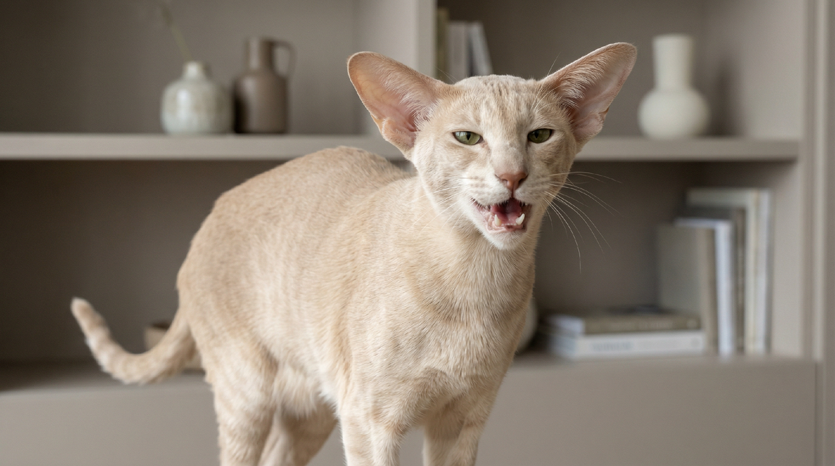 Вы видите изящную кошку с огромными ушами и удлинённой мордой. Тонкая, грациозная, выглядит как инопланетное существо. Элегантная, утончённая, необычная. Заводчик говорит: очень умная, общительная, привязчивая к хозяину. Вы покупаете ориентального котёнка за шестьдесят тысяч, ожидая интеллектуального компаньона. Через неделю понимаете: общительная означает не затыкается ни на секунду, привязчивая означает не отстаёт ни на шаг, умная означает хитрая и манипулирующая. За двадцать лет я видела десятки владельцев ориенталов, которые сдавались и отдавали кошек обратно заводчикам. Не выдерживали постоянного шума, навязчивости и эмоциональных качелей. Сегодня расскажу пять главных недостатков ориентальной кошки, которые превращают жизнь в нервотрёпку.