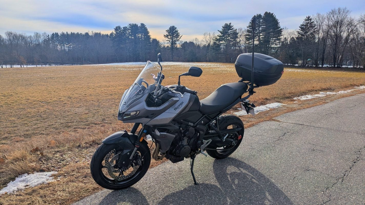 После теста Tiger Sport 660 мысль о нём не отпускала. В списке кандидатов на замену возрастного турера были и более крупные модели, но в итоге именно 660-й оказался в гараже. Уже в день покупки байк начал превращаться в проект. Каждый новый мотоцикл получает у меня обязательный набор: дополнительный свет, багаж, нормальный сигнал, защита от ветра и, при необходимости, работа с подвеской. И заодно проверку на «ремонтопригодность». Сначала установлены фирменный задний багажник и кофр, USB-порт и противотуманные фары. Всё оригинальное — мотоцикл на гарантии, электроника завязана на CAN-шину, эксперименты пока откладываются. Багажник встал элементарно — четыре болта и готово. Кофр и площадка тоже. Проблема проявилась при установке сиденья: оно не защёлкивалось. Причина — стойки нового багажника выше штатных ручек пассажира. Пришлось снять два резиновых упора с сиденья. В инструкции об этом ни слова. Небольшая деталь: фирменные кофры выглядят как стандартная система крепления Monokey, одна