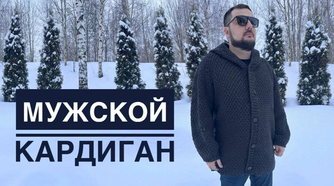 Вяжем мужской кардиган с капюшоном на пуговицах.