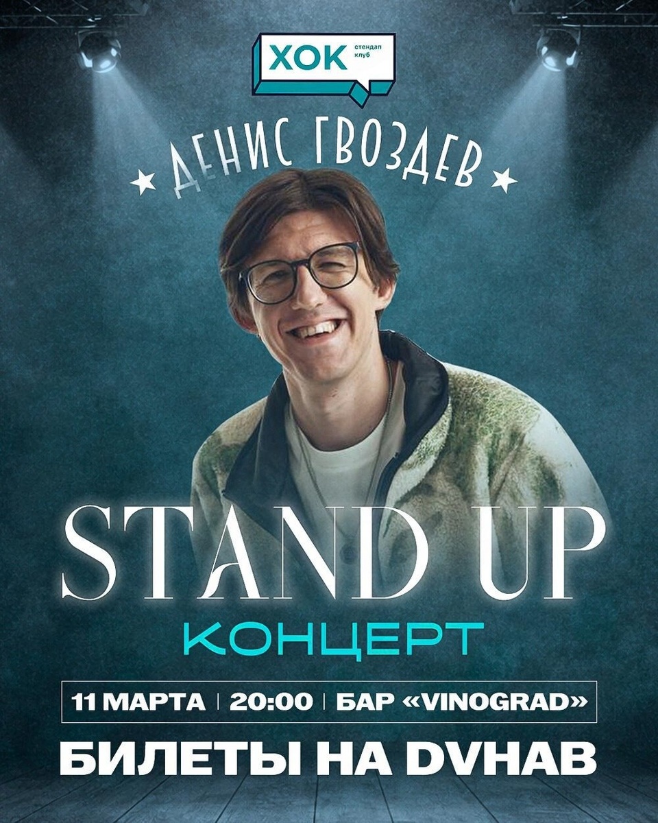 ✔ Сольный стендап-концерт #11_марта в Хабаровске ✔ Участник «Stand Up на ТНТ», финалист Big Money Mic, победитель шоу «Открытый микрофон» ✔ Авторский материал о повседневных ситуациях и узнаваемых жизненных моментах ✔ Формат живого выступления в камерном пространстве ✔ Запуск зрителей с 19:00 📅 Когда: #11_марта в 20:00 ⛳ Где: VinoGrad, ул. Шевченко, 16 💳 Стоимость: 1000–1500 ₽ Билеты 👉 Афиша Хабаровска. Куда сходить, экскурсии
