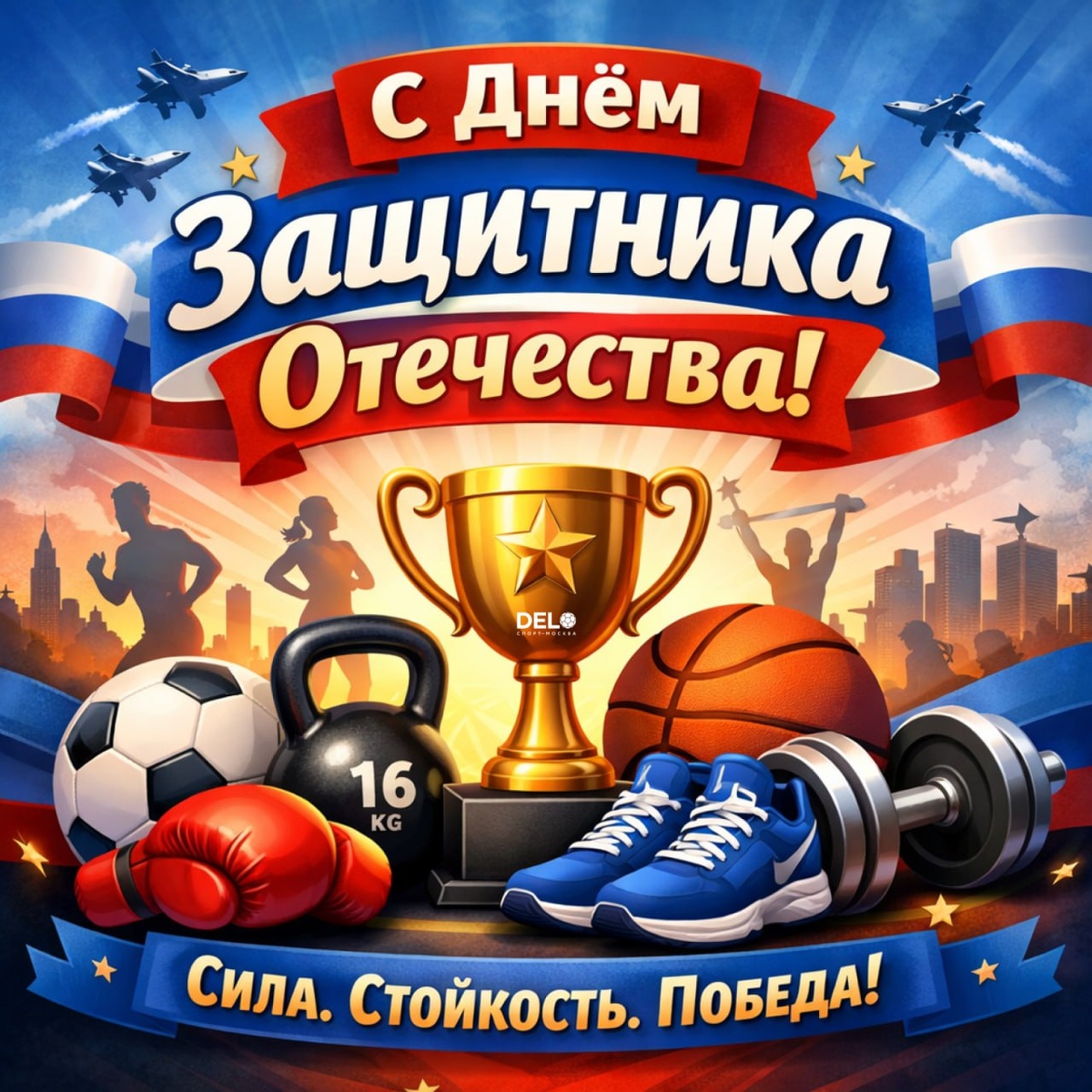 ! 🇷🇺 С праздником силы, мужества и ответственности. Этот день — про надёжность и готовность быть опорой. Желаем вам крепкого здоровья, энергии, уверенности в своих силах и новых побед — личных и командных! Пусть каждый день будет шагом вперёд! 💙 С уважением, Команда "ДелоСпорт"