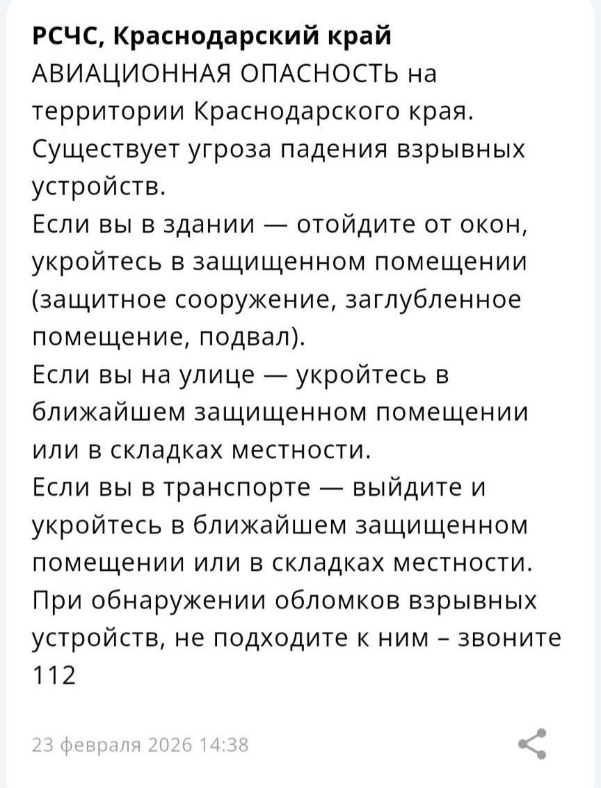 Авиационная опасность объявлена в Краснодарском крае.