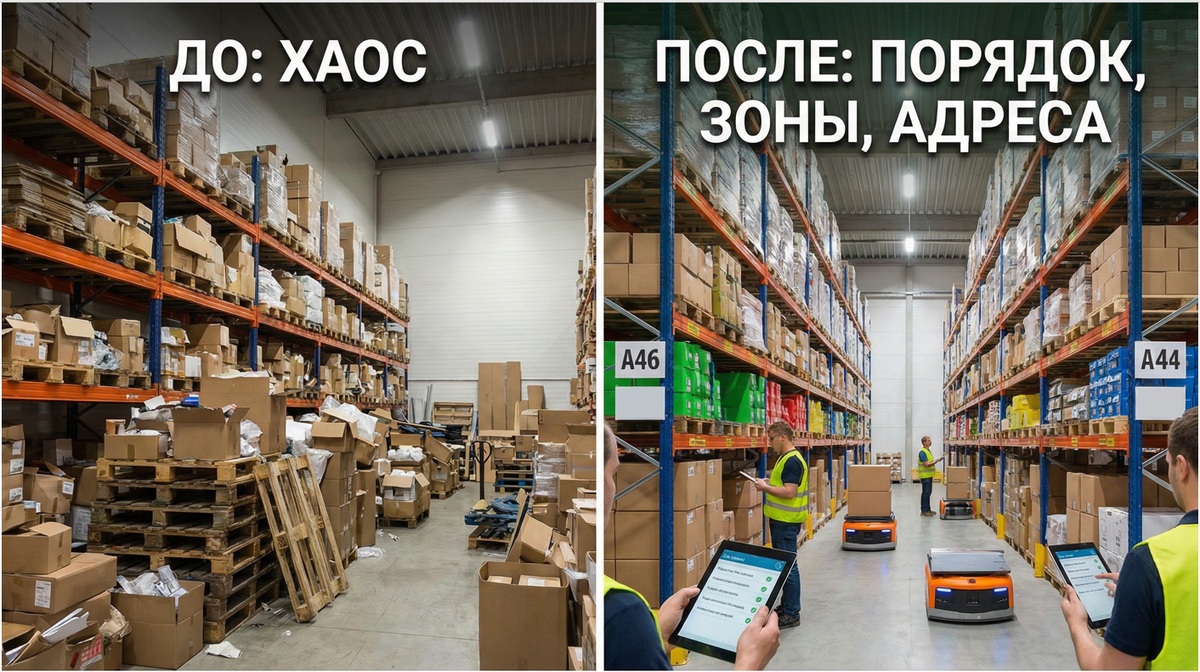 Ключевой акцент при внедрении WMS в том, что склад сначала нужно подготовить, иначе WMS превращает существующий бардак в цифровой бардак. Это детально описано в разных источниках, и с практикой: на VC, например, прямо пишут, что «мало купить WMS — нужно подготовить склад: зоны, габариты/вес, правила хранения».
