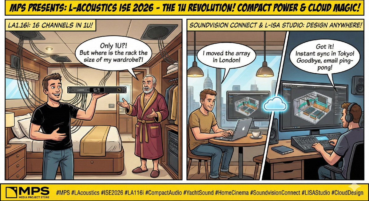 Внимание всем инсталляторам, системным интеграторам и тем, кто каждый раз играет в тетрис, пытаясь впихнуть рэковые шкафы в крошечные серверные! На выставке ISE 2026 французы из L-Acoustics показали, что размер всё-таки не главное, и выкатили LA1.16i — сверхкомпактный 16-канальный усилитель. Раньше 16 каналов фирменного усиления означали, что вам нужно выделить под оборудование отдельную комнату с собственным кондиционером и усиленным перекрытием. Но мир меняется: сегодня премиальный звук должен быть не только кристально чистым, но и абсолютно невидимым. Новый LA1.16i занимает всего один юнит (1U) в рэковой стойке. L-Acoustics явно целились в рынки, где каждый квадратный метр стоит как крыло самолета: Вместе с «железом» на выставке обновили и софт. Платформа для работы с иммерсивным аудио L-ISA Studio получила свежий апдейт, а облачный сервис Soundvision Connect оброс новыми функциями для совместной работы. Мечта стала реальностью: теперь вы можете проектировать акустику сложного объек