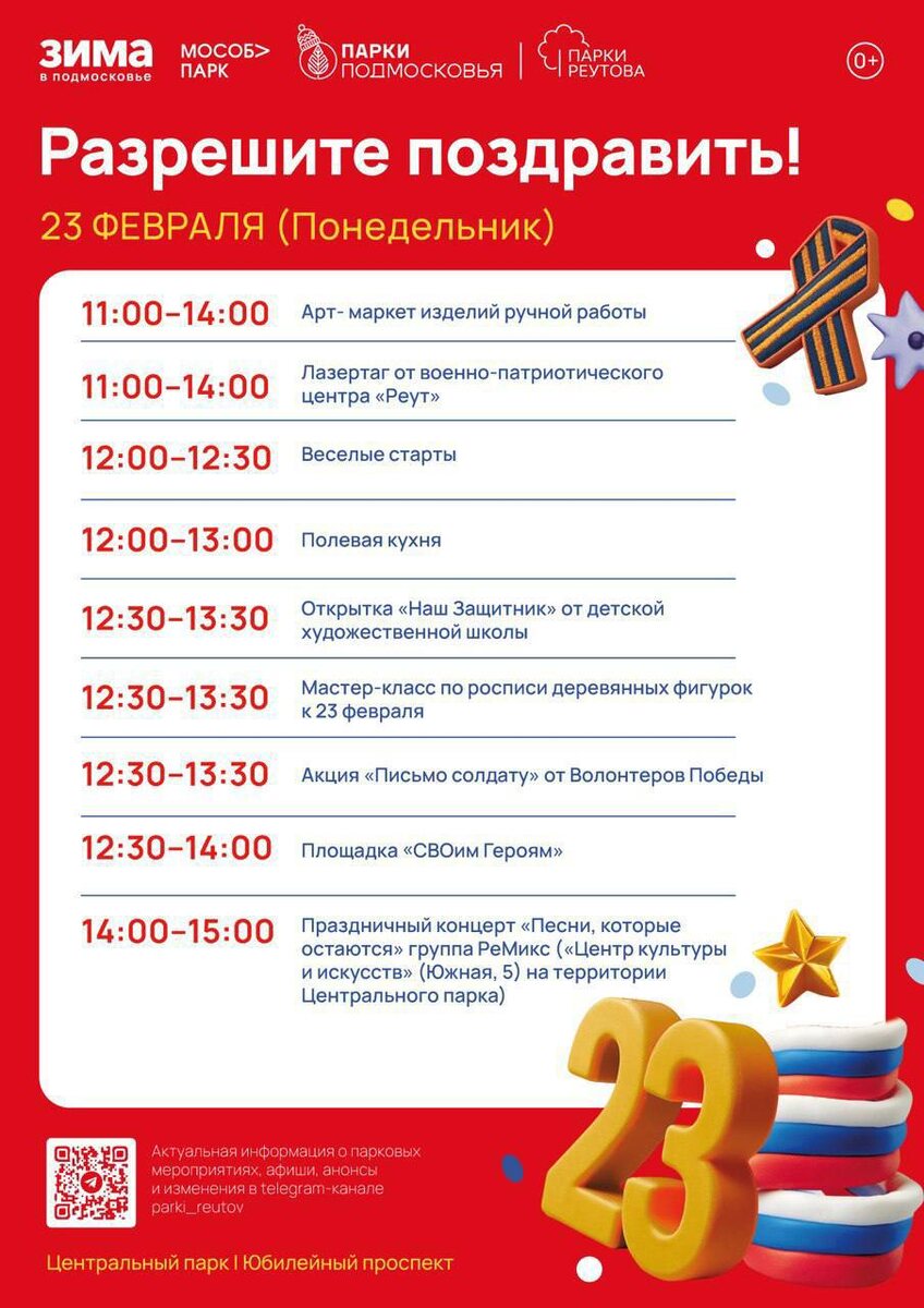 ✨ Центральный парк Реутова приглашает на празднование 23 февраля