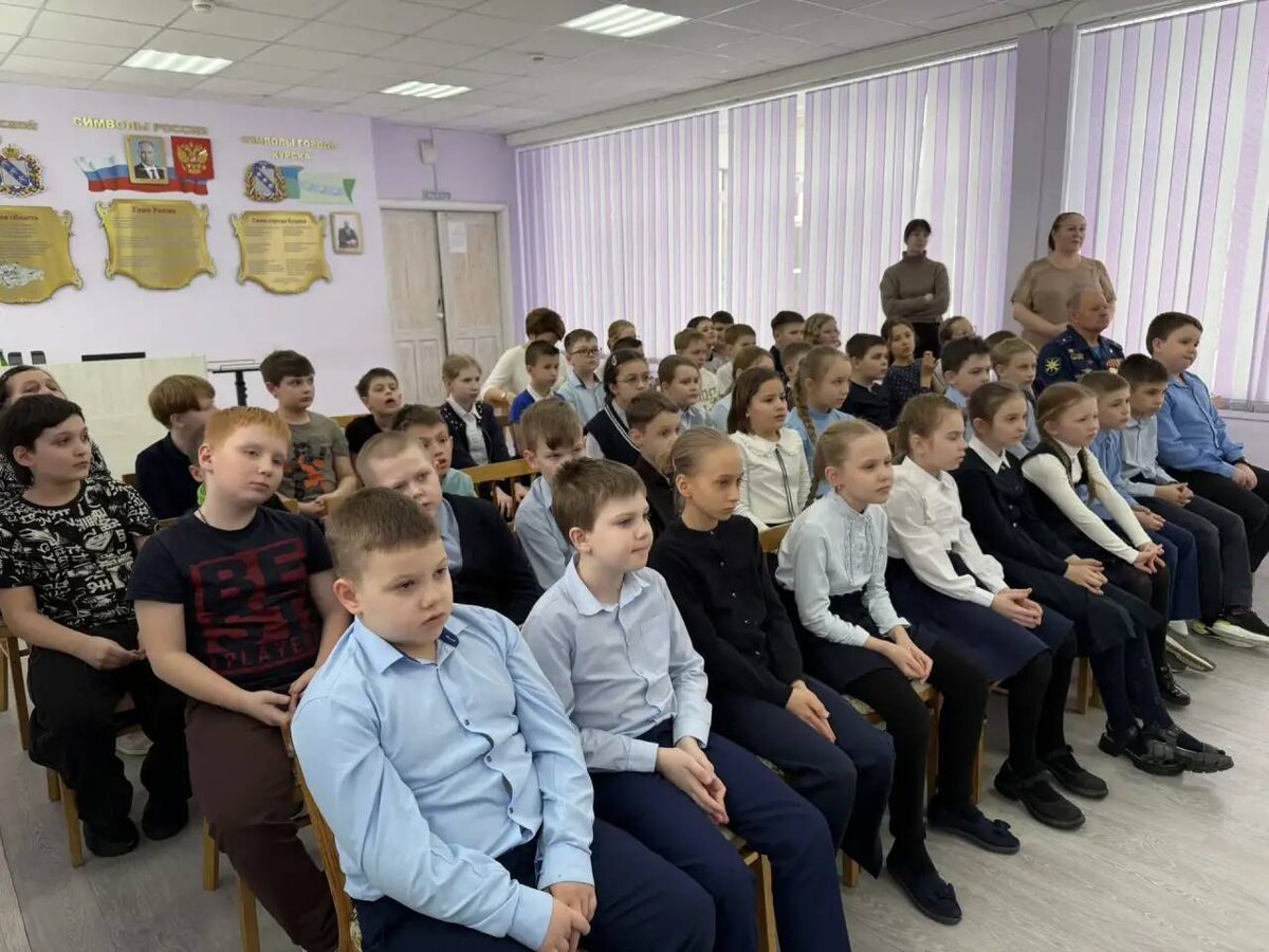 В рамках литературно-патриотической акции «На защите родных рубежей» сотрудники библиотеки-филиала № 13 Курска провели для учеников прогимназии «Радуга» программу «Мужество, доблесть и честь». Военный летчик, участник боевых действий в Афганистане, поэт Сергей Писаревский рассказал детям об исполнении интернационального долга во время своей службы и ознакомил участников с авторскими патриотическими стихотворениями. Фото: администрация города Курска.