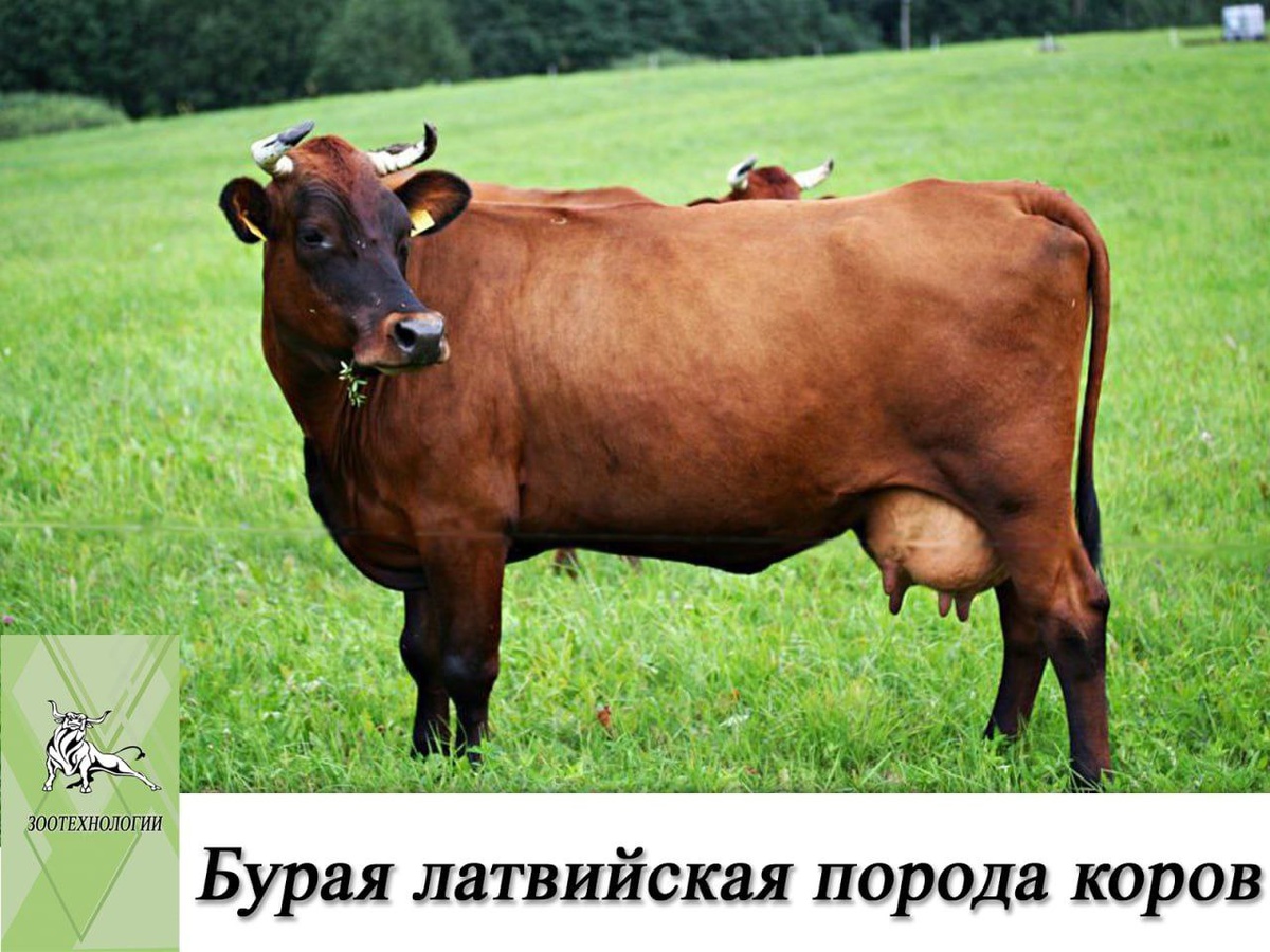 📖 История происхождения: Данный вид коров был создан в результате длительного скрещивания местного малопродуктивного скота с животными ангельнской и красной датской пород. Сегодня бурая латвийская порода является одной из наиболее распространенных на территории Прибалтики благодаря хорошим продуктивным характеристикам и приспособленности к местным климатическим условиям. 🐄 Внешний вид: Бурая латвийская порода коров имеет крепкую конституцию, тонкий костяк и угловатые формы. Живая масса коров составляет около 450 кг, а вес бычков при рождении колеблется от 29 до 37 кг. Бурая латвийская порода характеризуется вытянутым туловищем, широкой и глубокой грудью, обычно ровной холкой и длинным широким крестцом (хотя иногда можно встретить свислый). Голова и шея у животных этого вида обычно тёмные, ноги также имеют тёмный цвет. Задние конечности нередко бывают саблистыми. 🍀 Продуктивность: Средний годовой удой бурых латвийских коров составляет от 4500 до 5000 кг молока на одну особь. Молоч