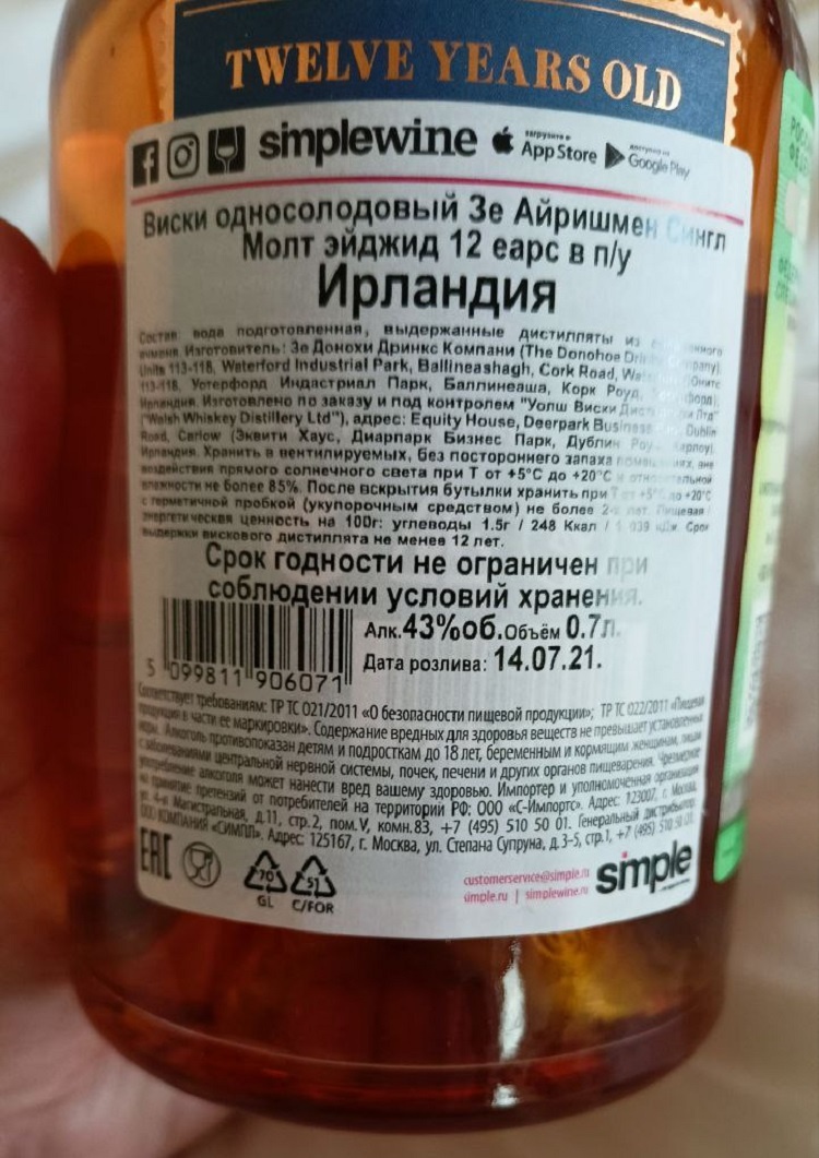 Небольшой пьяненький обзор-размышление. Сдаётся мне, что вокруг выдержки виски создано много мифов. Ну типа чем больше ему лет, тем он благороднее и вкуснее. Такой напиток и продают дороже в расчёте на толстый кошелёк искушённого гурмана. Например односолодовый двенадцатилетний молт THE IRISHMAN. Несмотря на конский ценник (порядка 17 000 рублей за бутылку), он не произвёл на меня сильного впечатления. Только градус радует непреклонной ирландской мужественностью. Хотя ... есть и побрутальнее вискари. Сколько не старался, я так и не уловил обещанные "тонкие пряные и сладкие ноты ванили, сливочного крема, корицы, гвоздики". Ну никак не прочувствовал "элегантно интегрированные тона свежих садовых фруктов и свежескошенного сена". А ведь приговорил пузырь в одно лицо за пару дней. Взять для сравнения скотландский молт ABERLOUR. Возраст тот же - 12 годиков, крепость ниже - стандартные 40, цена меньше! в два с половиной раза, но при этом ароматно-вкусовые качества гораздо интереснее, разноо