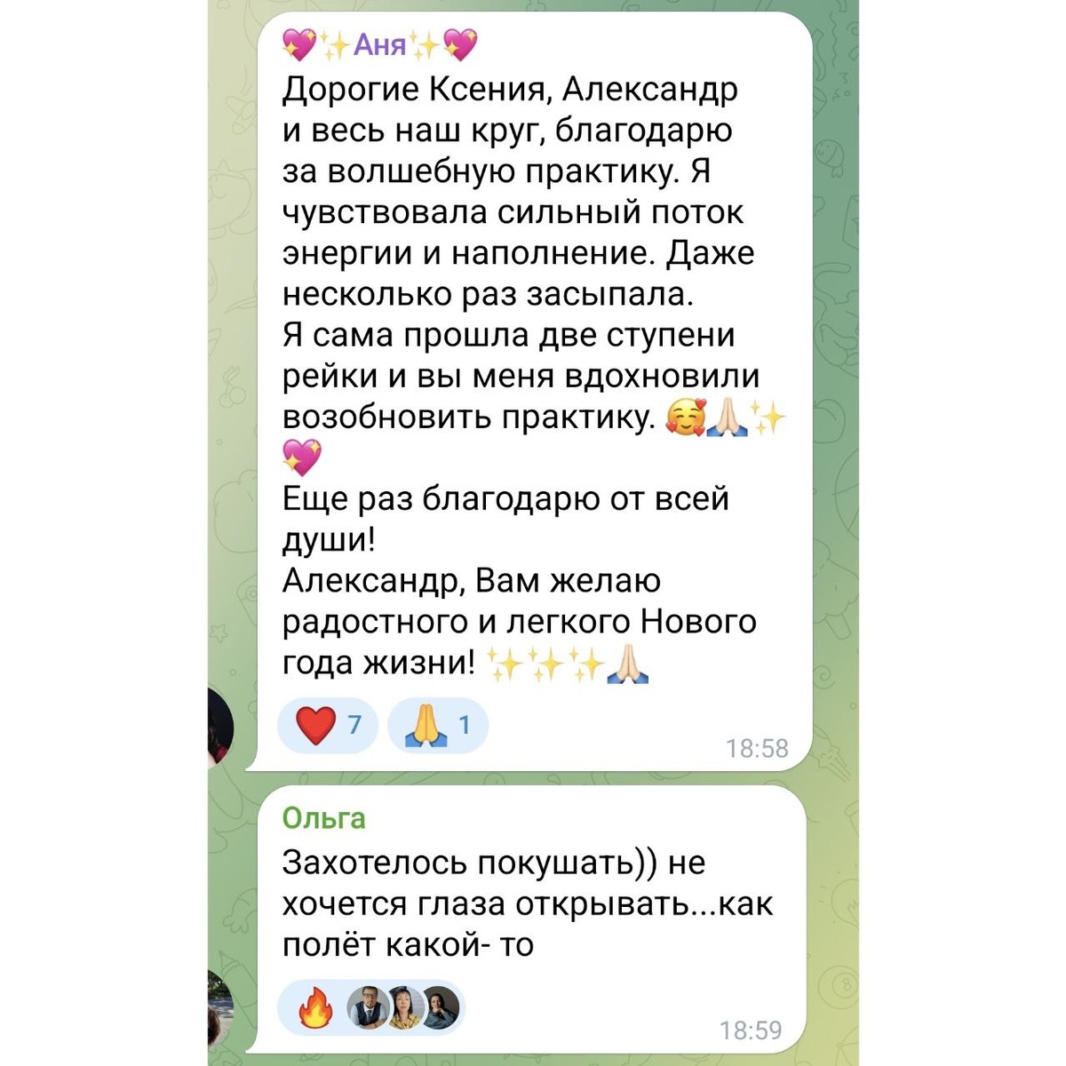 🔥 165 человек в одном поле! Провели Круг Рэйки с намерением на личный ресурс и наполнение энергией — работа с телом, вниманием, образом себя в ресурсе. Спасибо каждому, кто был с нами — именно вы создаёте это поле и это чувствовалось по-настоящему. 🎧 Первые наушники для сна уходят к Наталье Дребезовой (так был подписан ник в zoom) — поздравляем! Наталья, напишите пожалуйста моей помощнице Елене по поводу получения подарка https://t.me/PotapovaElenaS А сегодня в 18:00 по мск — второй эфир марафона. Тема: отношения, семья, пара, дети. Проведём Круг Рэйки на гармонизацию отношений и семейного поля. И среди участников эфира снова разыграем наушники для сна 🎧 Ждём вас сегодня — приходите с намерением!