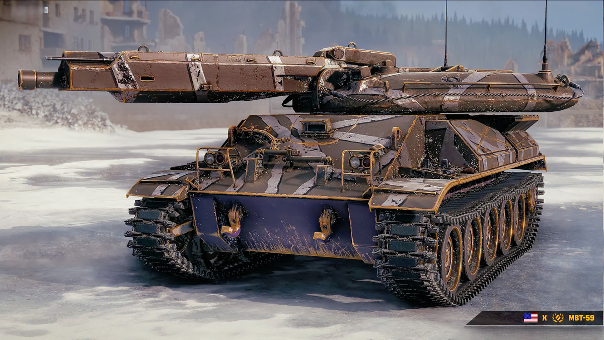 Всем привет, друзья! Сегодня поговорим о танке, который с первого взгляда заставляет спросить: «Это вообще что такое?» Силуэт у него такой, будто кто-то скрестил средний танк с космическим кораблём. Знакомьтесь — MBT-59, американский экспериментальный проект конца 50-х годов, который, скоро появится в игре.
