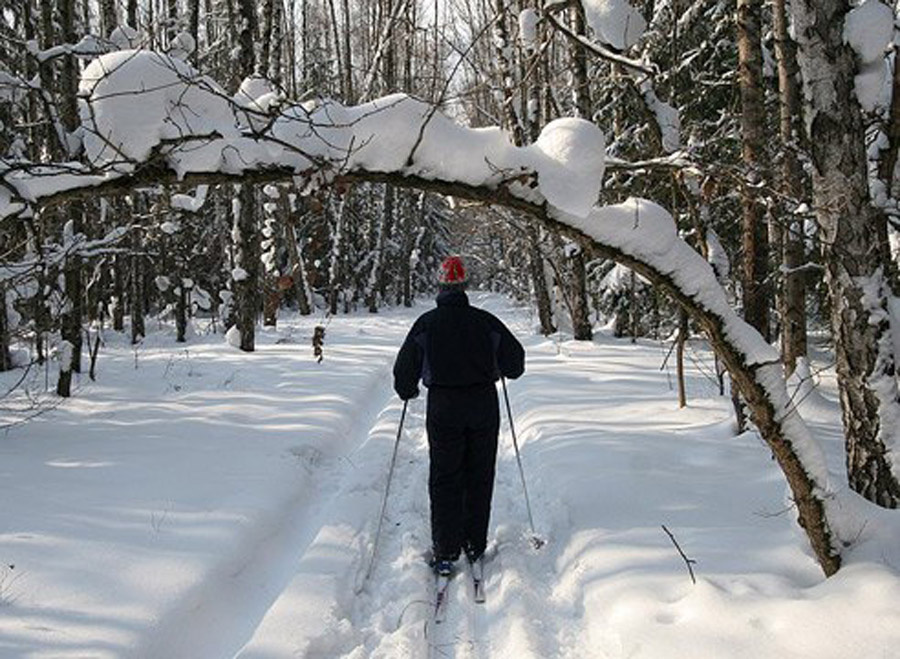 По пути и навстречу попадалось довольно много людей. Зубарев не обманул – лыжня была классная, с высокими длинными горками и подъёмами, окружённая деревьями, которые теперь скрывали Петьку от «жаркого» солнца. Его свет лишь изредка прорывался через проплешины между тёмными елями, пушистыми соснами и усыпанными мелкими шишками лиственницами. Встречались и старые березы, на которых полукруглыми выступами рос гриб-трутовик.