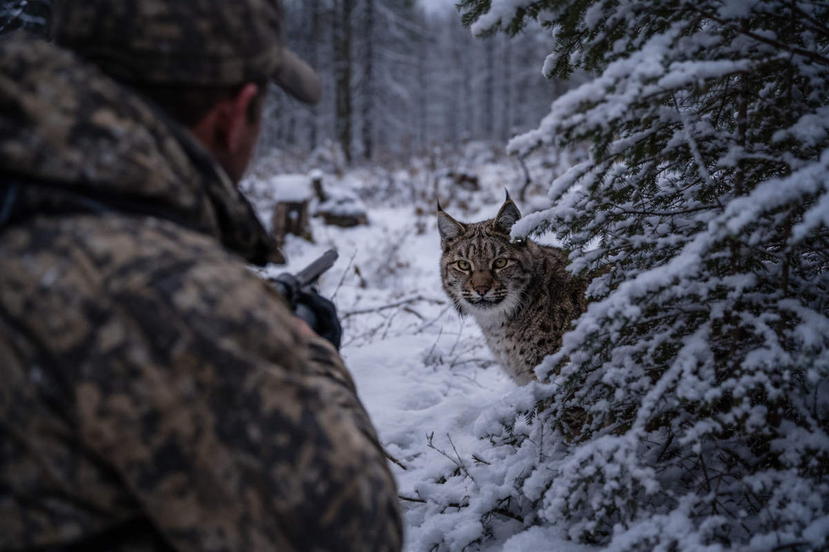 Старая делянка всегда выглядит пустой. Пни, серые, как кости, редкий подрост, бурелом, занесённый снегом. Кажется — всё уже произошло, лес спилен, жизнь ушла дальше, а здесь только ветер и прошлогодняя щепа под настом. Но именно в таких местах зима любит оставлять свои тайны. И именно здесь чаще всего понимаешь, что в тайге ты — не главный. Мы шли не на рысь. Мы шли проверять следы зайца и лисы по кромке вырубки. Мороз был крепкий, под тридцать. Снег лёг ровно, с тонким хрустящим настом, который держит осторожного зверя и предательски ломается под тяжёлым шагом человека. Воздух стоял неподвижный, прозрачный, и звук разносился далеко. В такую погоду лес слышит всё. Сначала я заметил тишину. Не ту, к которой привыкаешь, а другую — настороженную. Ни синицы, ни сороки, ни следов белки на поваленных стволах. Даже мышиная тропка под снегом казалась замёрзшей. Юрка остановился, посмотрел в сторону старого волока и сказал тихо: