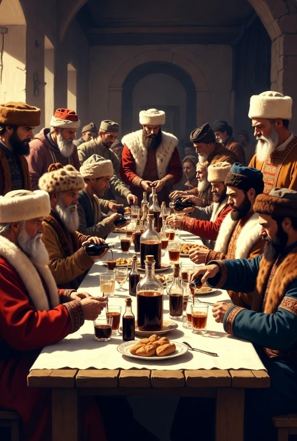 Поэтому возник обычай: **наливать на глазах у всех**, максимально открыто, чтобы никто не мог незаметно подсыпать зелье. Когда виночерпий (или хозяин) наливал через руку,